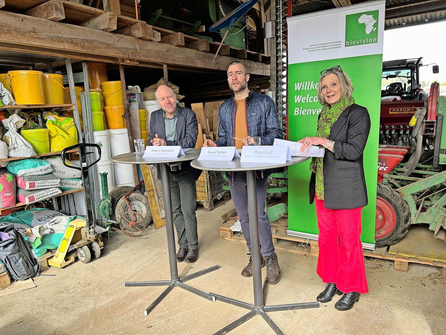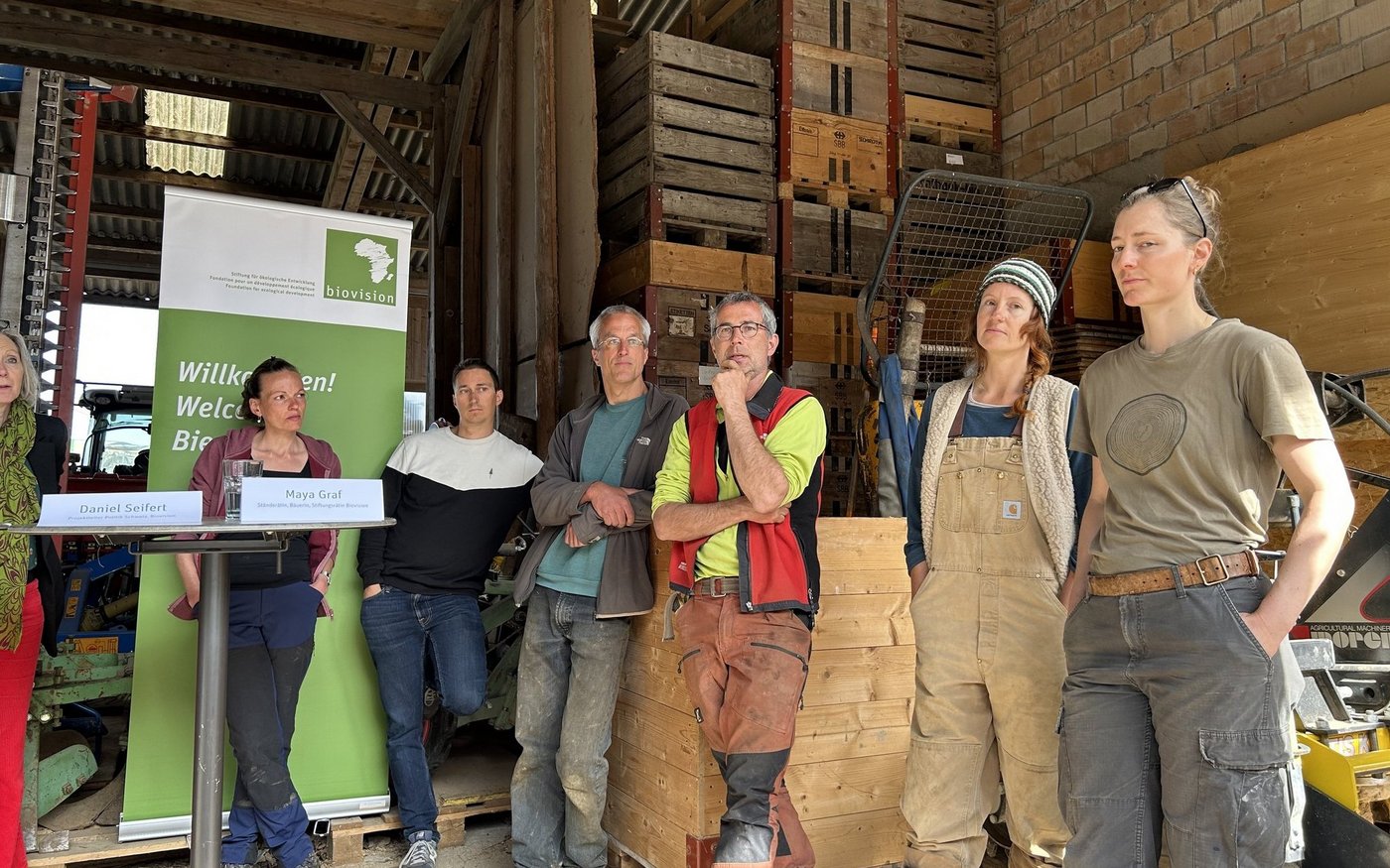 Zuspruch und Unterstützung für ihr Engagement erhielten sie am Montag, 14. April, von Anders Gautschi, Daniel Seifert und Ständerätin Maya Graf von Biovision. Gautschi leitet seit dem 1. Januar 2025 die Geschäftsstelle, Seifert ist Projektleiter Politik Schweiz und Graf Stiftungsrätin. Sie stellten die Studie «Förderung agrarökologischer Prinzipien im Schweizer Agrar- und Ernährungssystem» vor, welche die Forschungs- und Beratungs-GmbH Flury & Giuliani im Auftrag von Biovision gemacht hatte.