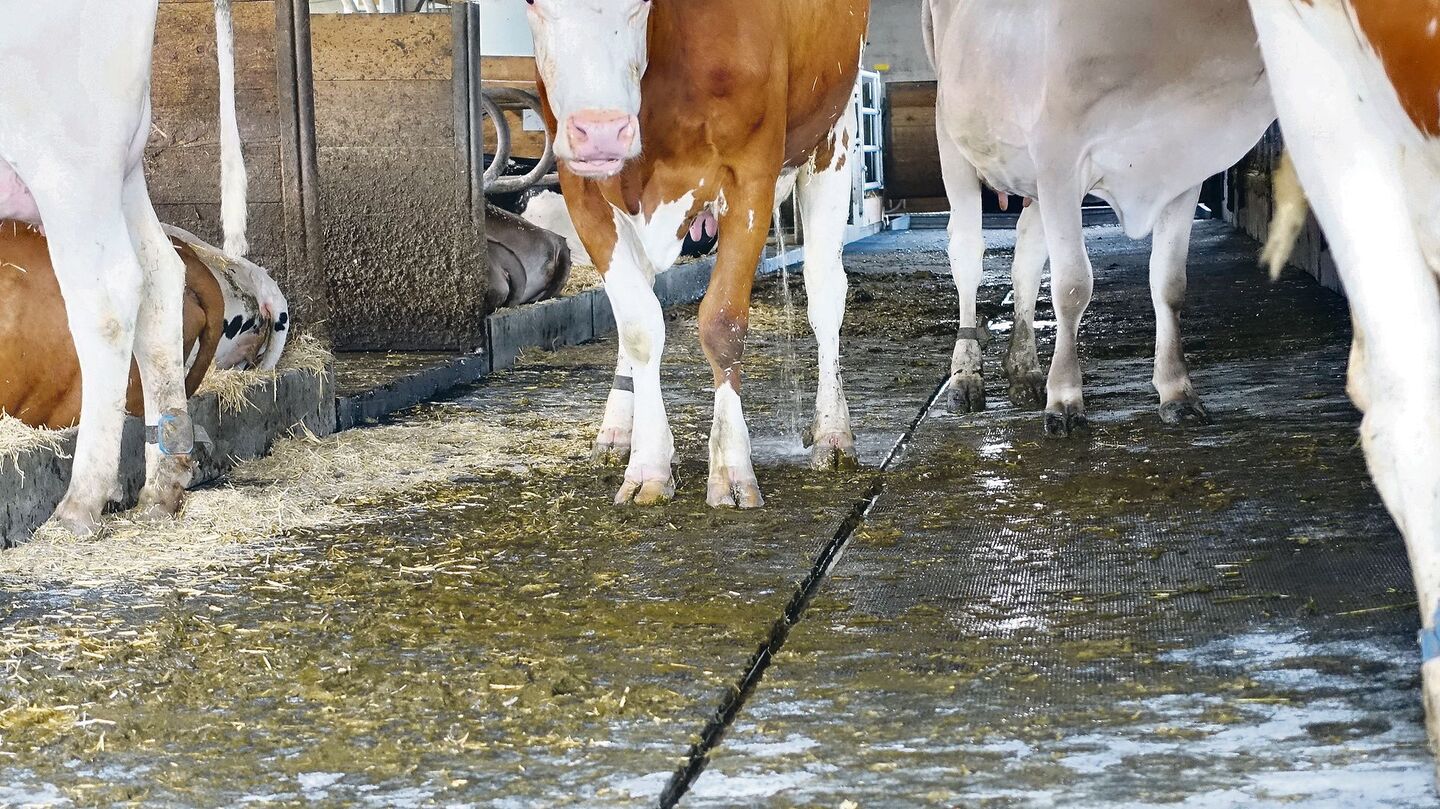 Beim Gutsbetrieb des BBZN Hohenrain wurde vor Jahren eine 3D-Gummimatte eingebaut, welche es ermöglicht, in einem bestehenden Laufstall mit Schieberentmistung ein Gefälle zu schaffen. In Kombination mit einer häufigen Entmistung laufe der Urin rasch in die vorhandene Rinne und vermische sich weniger mit dem Kot. Bauberater Markus Bucheli sieht neben der Ammoniakreduktion mehrere Zusatzvorteile bei diesem Produkt: Die Kühe stehen trocken, der Boden ist rutschfest und der Urin läuft vom Fressgitter weg.