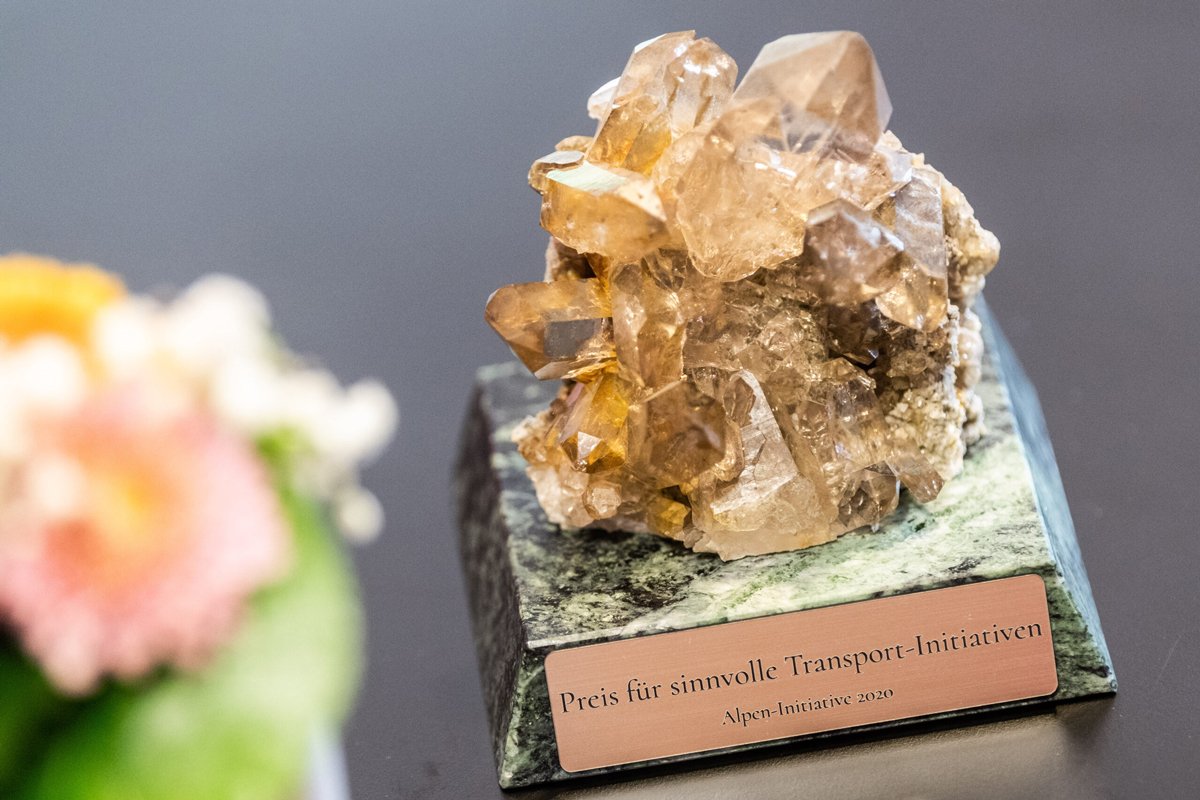 Der Bergkristall wird jährlich an Unternehmen vergeben, die sich im Sinn des Vereins Alpeninitiative dafür stark machen, mit innovativen Ideen Güter- und Strassentransporte zu reduzieren oder ganz zu vermeiden. 2020 geht er an den Kulinarischen Herbst, denn wo regionale Produkte in den Küchen von Gastro-Betrieben verwendet werden, sind die Transportwege kurz und es kann CO2 eingespart werden.