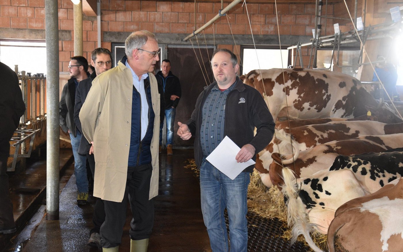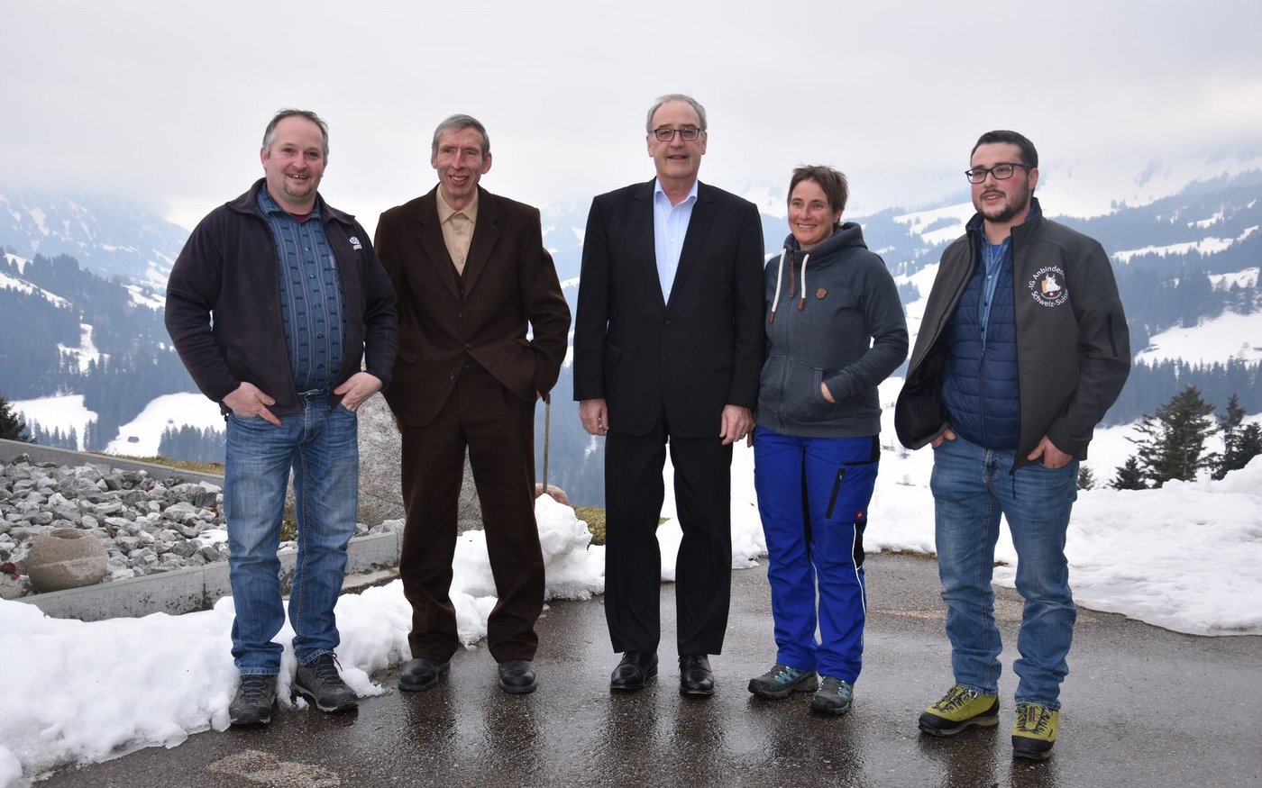 Was viele sich wünschen, hat die Interessengemeinschaft IG Anbindestall fertig gebracht. Am Freitag hatten sie ein Treffen mit dem Bundesrat Guy Parmelin auf dem Bio-Hof der Familie Rudolf und Susanne Stucki in Schangnau BE organisiert. Mit dem Besuch wollten sie dem Bundesrat beweisen, dass auch ein Anbindestall viele Vorteile hat und sich die Kühe darin wohlfühlen können. Der Betrieb Stucki, hoch oberhalb von Schangnau, ist ein typischer Emmentaler-Betrieb mit Milchwirtschaft und Viehzucht. Im Stall stehen zirka 25 Kühe plus Nachzucht. Der Betrieb ist knapp 30 ha gross.