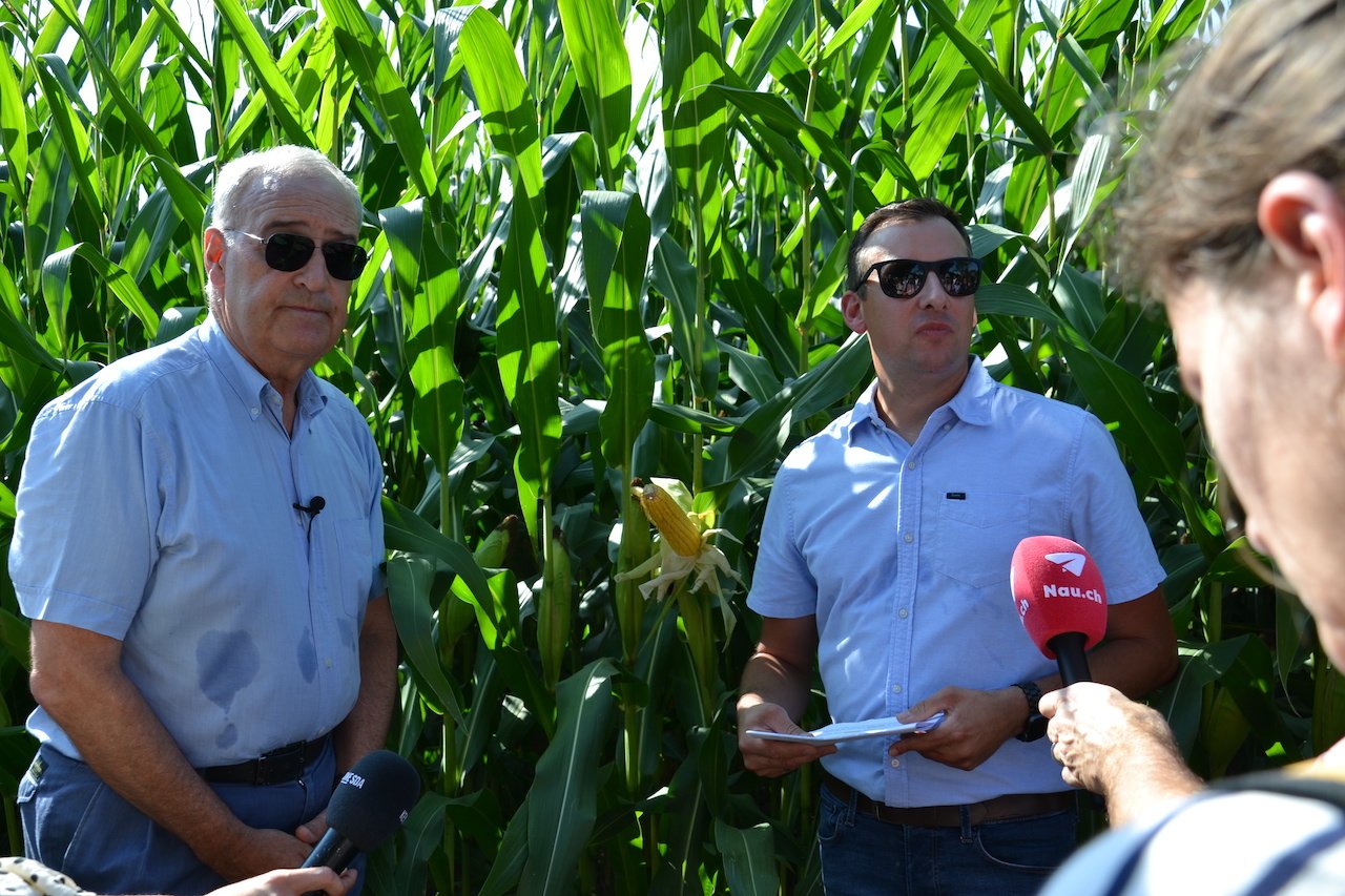 Eine halbstündige Autofahrt von Bundesbern entfernt steht Bundesrat Guy Parmelin schwitzend im Kartoffelfeld von Christoph Herren. Der Landwirt erzählte den versammelten Pressevertretern vom schwierigen Kampf gegen die Krautfäule im nassen Frühling. «Ich habe sehr viel in den Schutz der Kultur investiert», betont er. Bei ihm seien Qualität und Menge zufriedenstellend – im Gegensatz zu einigen Berufskollegen. «Aber ein Jahr wie dieses hätte vor 100 Jahren eine Hungersnot gegeben», bemerkte Herren. Die Produzentenpreise müssten steigen, um die teureren Produktionsmittel und häufigeren Wetterextreme bewältigen zu können. «Ich muss ein schlechtes Jahr mit einem überdurchschnittlich guten kompensieren können», gab Herren zu bedenken.
