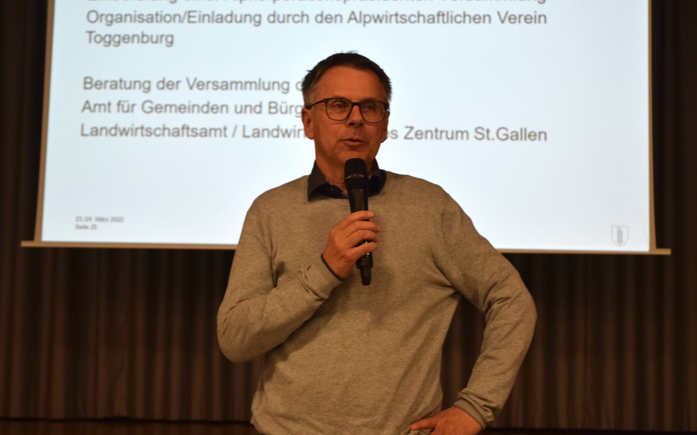 Nach Informationsveranstaltungen durch den Kanton im März 2022 arbeitete die Grundbuchaufsicht des Kantons St. Gallen Musterverträge für den Alpzimmervertrag und den Baurechtsvertrag aus. Diese wurden an zwei Treffen mit den 32 Alpkorporationspräsidenten besprochen. Das zweite Treffen unter dem Dach des Alpwirtschaftlichen Vereins Toggenburg fand am 7. November 2022 statt. Markus Hobi, Leiter Landwirtschaftliches Zentrum St. Gallen in Salez, war beim Treffen als Kantonsvertreter ebenfalls dabei.