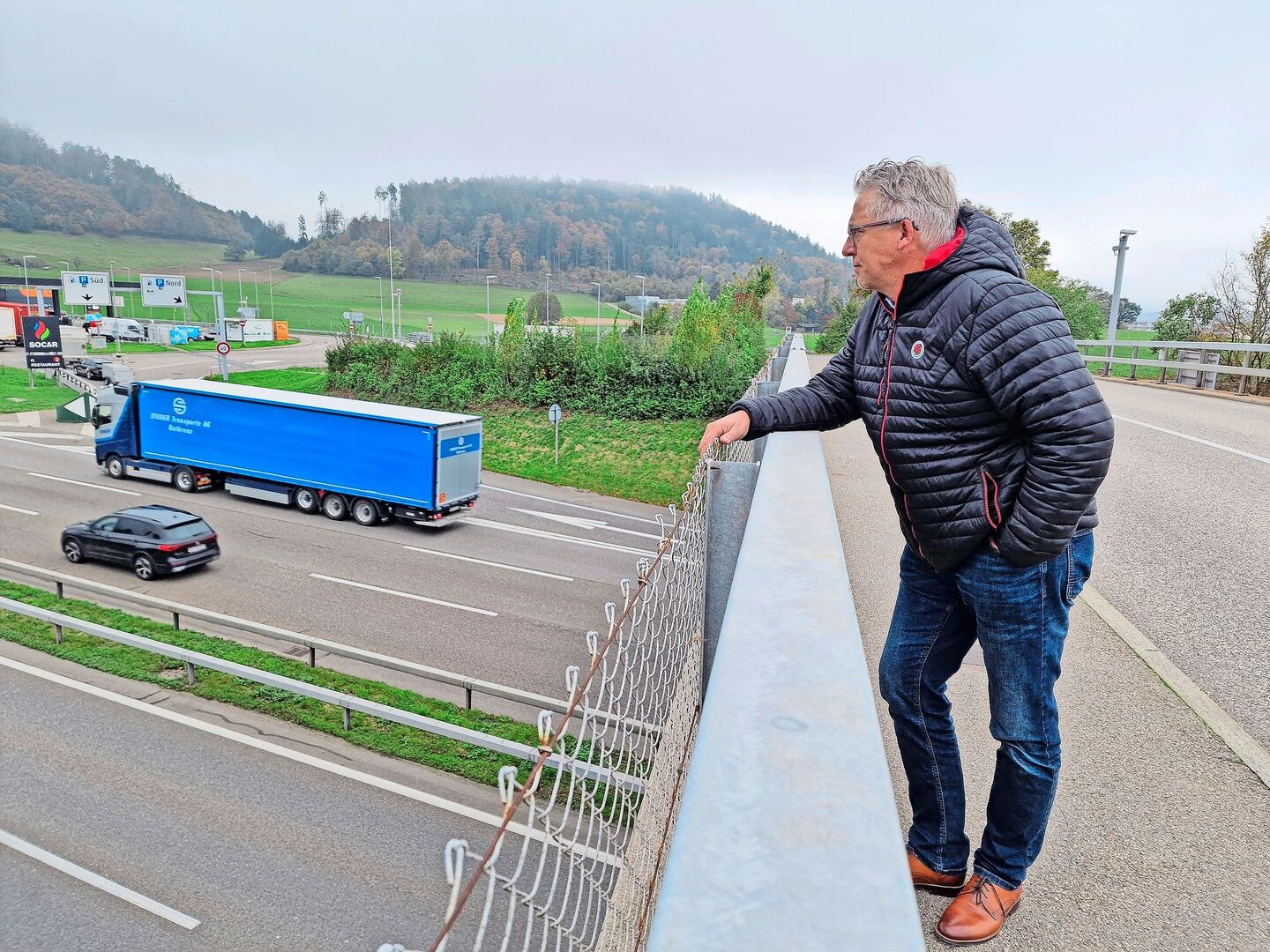 Es ist ein grauer Morgen am Grauholz bei Bern. Die Brücke, auf der wir mit Christophe Eggenschwiler, dem Geschäftsführer von IP-Suisse, stehen, bietet einen Blick auf die darunter verlaufende Autobahn. Autos und Lastwagen schieben sich im zähfliessenden Verkehr vorwärts, das Geräusch der Motoren vermischt sich mit der feuchten Herbstluft. «Die Erweiterung der Autobahn ist ein heikles Thema», sagt Eggenschwiler nachdenklich, während er den Verkehr beobachtet. «Es betrifft uns nicht nur im Heute, sondern auch die Mobilität der kommenden Generationen.»