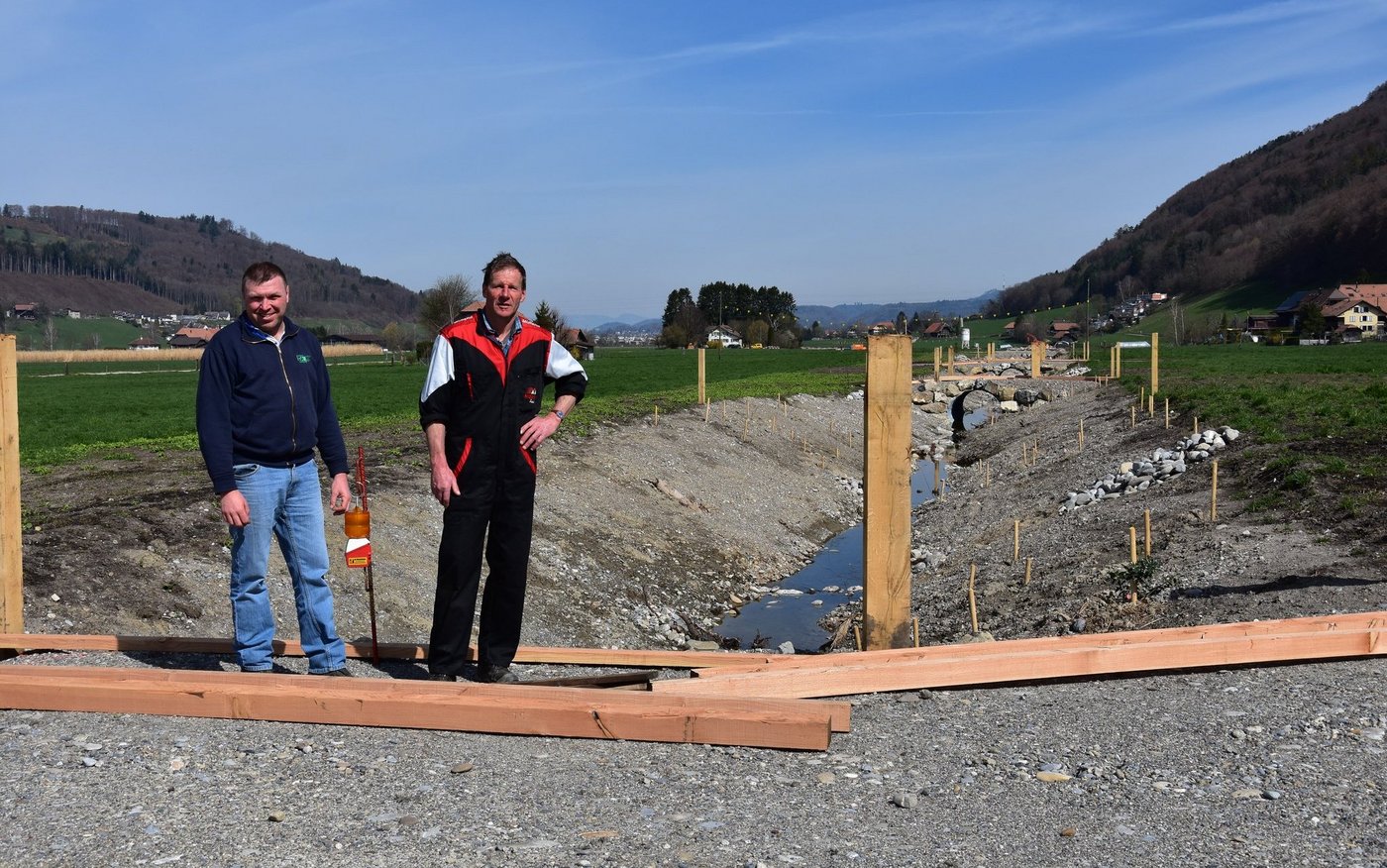 Dieser neue Bach quert auch die Weide der BG Oppliger. «Zuerst verstand ich nicht, warum dieser mitten durch die Parzellen fliessen muss", menint Ueli Oppliger. Doch die Bauverwaltung habe sich kooperativ gezeigt. So werden jetzt Übergänge gebaut, auf welchen die Kühe den elf Meter breiten Gewässerraum überwinden können. Für das verlorene Weideland erhält Oppliger Realersatz.