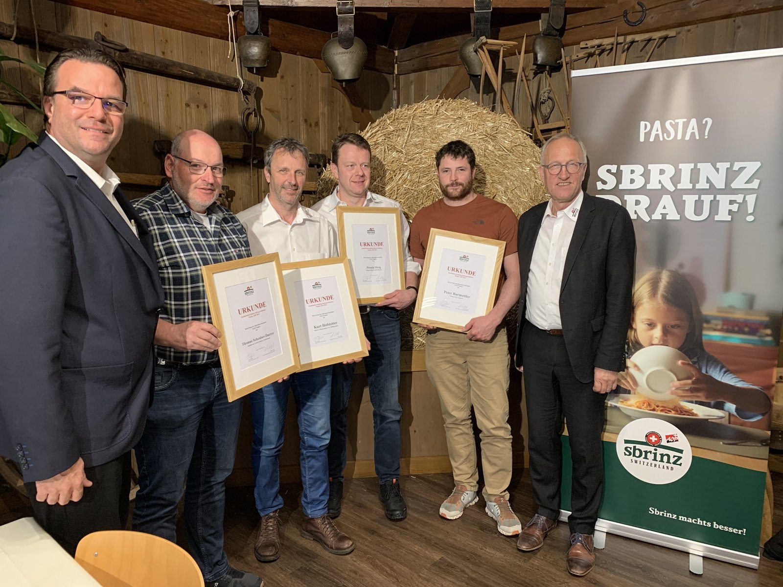 Peter Barmettler, Käserei Hof, Buochs, 19,92 Punkte; Kurt Hofstetter, Käserei Hildisrieden, Pirmin Dörig, Käserei Bürg, Buochs, je 19,84 Punkte. Die höchste Taxation von 20 Punkten erreichte als Alpkäser Thomas Scheuber von der Alpkäserei Untertrübsee, Ennetmoos. Sbrinz wird noch in 22 Tal- und Alpkäsereien in der Zentralschweiz hergestellt.