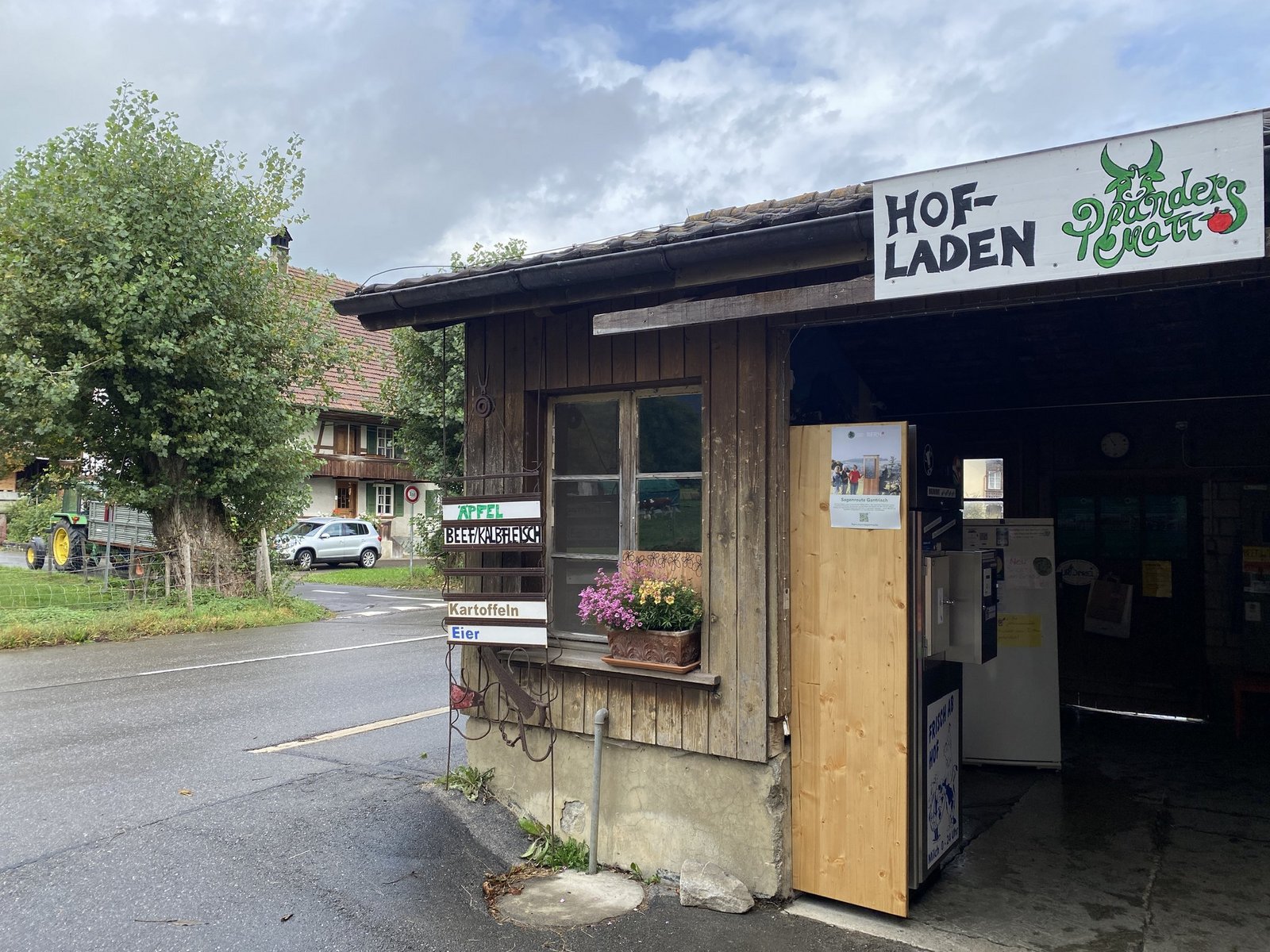 Die Rechnung der Pfandersmatt geht nicht zuletzt dank der Direktvermarktung auf. Im Hofladen werden Fleisch und Frischmilch vom Betrieb verkauft, genau wie Tafelobst von den zahlreichen Hochstammbäumen.