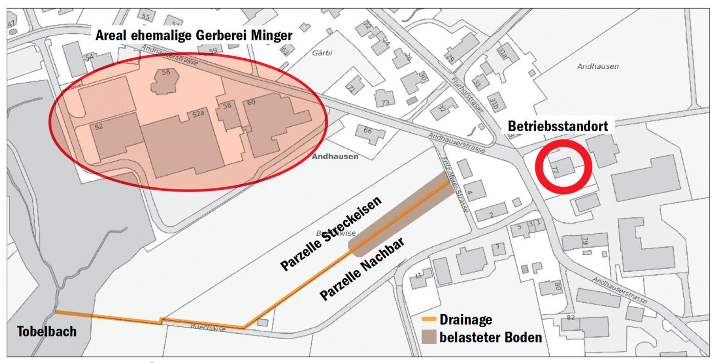 Streckeisens Pech ist, dass die ehemalige Gerberei Minger für den Schaden nicht mehr belangt werden kann, da sie zwischenzeitlich aufgelöst wurde. Zudem handelt es sich beim Standort nicht um eine öffentliche Deponie, für welche eine oder mehrere Gemeinden aufkommen müssten.