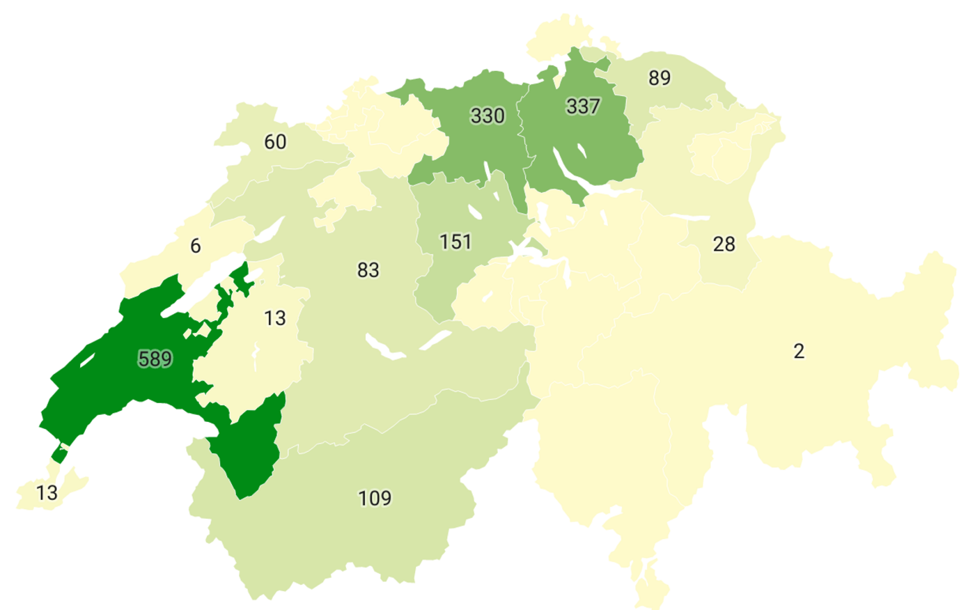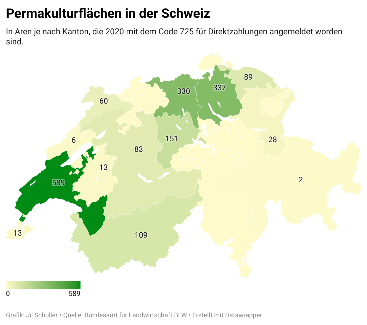 Seit 2020 können Permakulturflächen für Direktzahlungen angemeldet werden. Am meisten gibt es aktuell in der Westschweiz, ingesamt 1810 Aren.