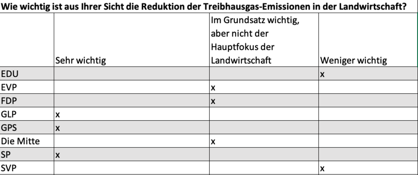 Wie wichtig ist Ihrer Partei die Reduktion der Treibhausgas-Emissionen in der Landwirtschaft?