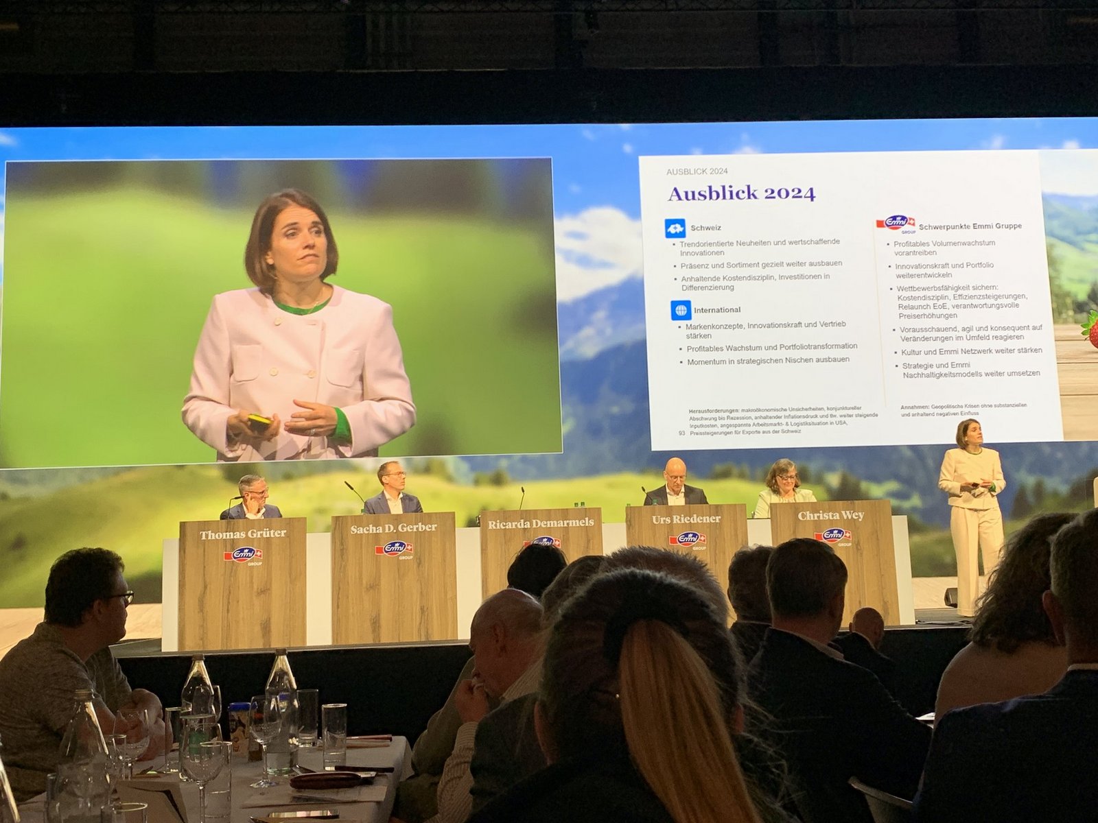 CEO Ricarda Demarmels wies auf das weiterhin schwierige Käsegeschäft hin, Emmi glaube aber an das Potenzial von Schweizer Käse und investiere weiterhin dafür. Für das laufende Jahr wird eine ähnliche Gewinnmarge von 5 bis 5.5 Prozent des Umsatzes erwartet.