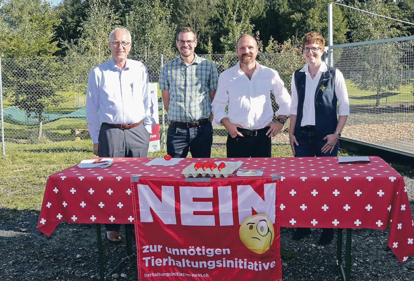 Der Konsument «bestelle» bei der Landwirtschaft, was er konkret einkaufe, meinte Thomas Rickenbacher, Präsident Zuger Bauernverband. Regula Iten, Präsidentin der Zuger Bäuerinnen, verwies auf das hohe Niveau der einheimischen Fleisch- und Eierproduktion. Die Konsument(innen) hätten schon eine grosse Auswahl an Labels. Der Zuger Ständerat Peter Hegglin illustrierte den Widerspruch zwischen Tierhaltungsansprüchen und Konsumnachfrage an einem Beispiel: Bei einer Velofahrt durch die Po-Ebene habe er keine einzige Kuh auf der Weide gesehen. «Dort wird Parmesan produziert, er ist die grösste Konkurrenz zu unserem Sbrinz. Trotzdem wird in der Schweiz viermal mehr Parmesan gekauft als Sbrinz.» Bei uns hätten knapp 80 Prozent der Nutztiere Auslauf ins Freie. «Das ist weltweit einmalig.»