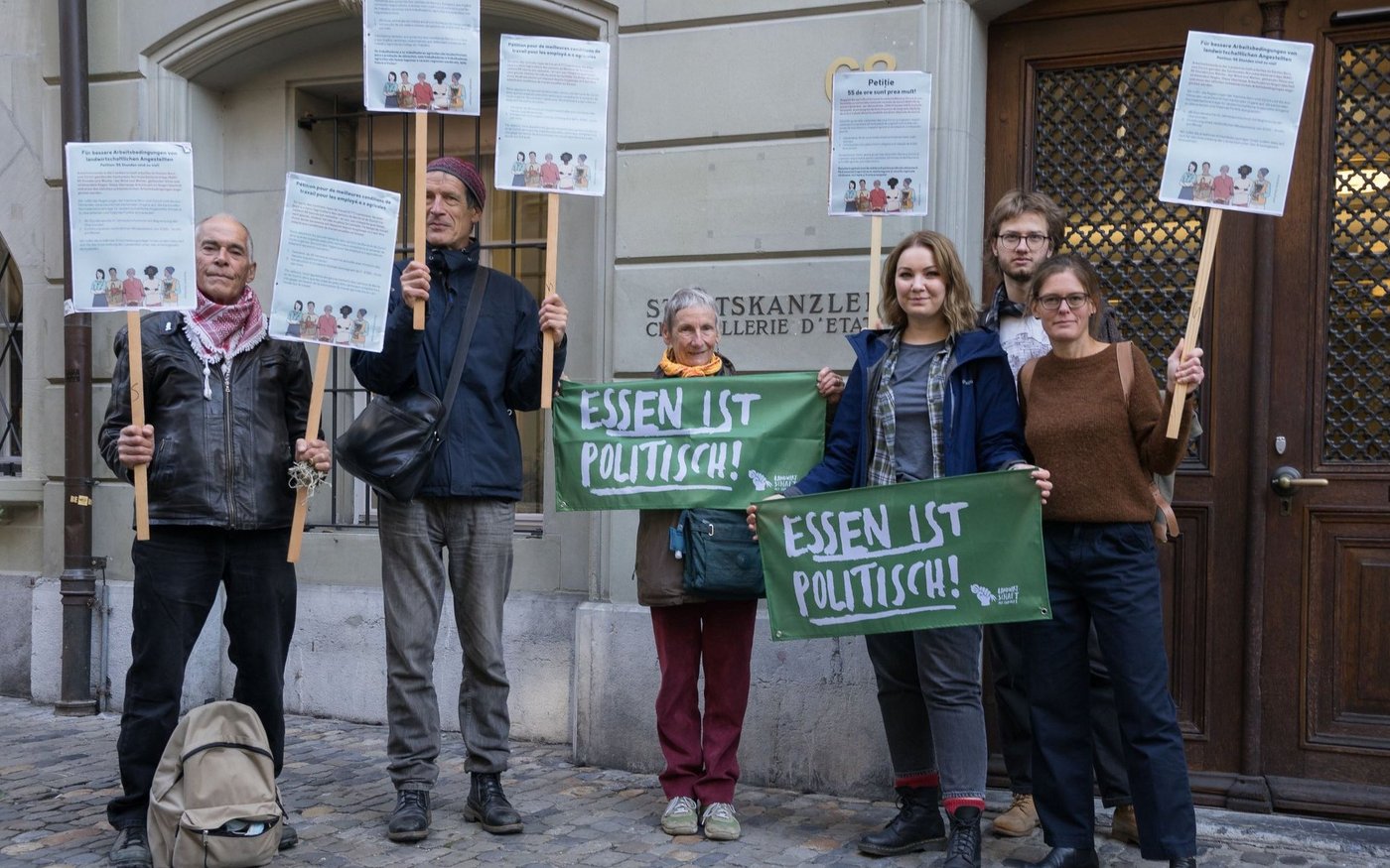 Ziel der Petition sei es, eine Verbesserung der Lebens- und Arbeitsbedingungen von hauptsächlich aus dem Ausland stammenden Landarbeiterinnen und Landarbeitern anzustossen. Dahinter steht das Netzwerk «Widerstand am Tellerrand», dem neben der Kleinbauern-Vereinigung, Unia und Uniterre auch verschiedenen Solawi-Projekte und politische Parteien wie Grüne Schweiz, das Grüne Bündnis Bern und die Zürcher SP angehören.