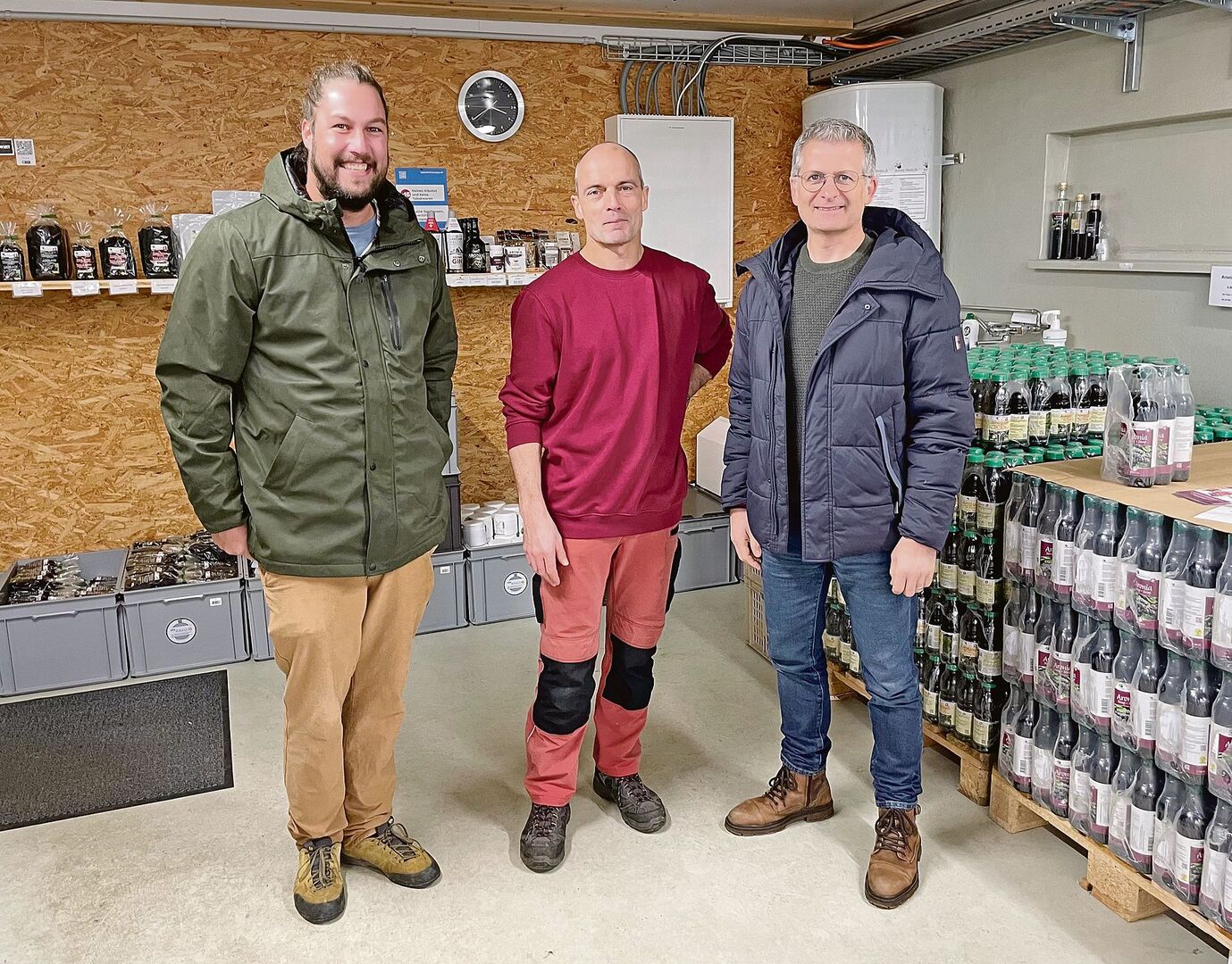 Von Beginn weg war für Thomas Heggli klar, dass die Wertschöpfung im Betrieb bleiben und die Position am Markt stark sein muss. Heute können in einer eigenen Halle in breiten Verarbeitungsabläufen alle Beeren gefroren, gelagert, getrocknet, gepresst oder sonst verarbeitet werden. Die Verarbeitung erfolge sehr schonend, und die Prozesse hätten sich perfektioniert. Auf Mischprodukte wird bewusst verzichtet, da Aronia die Kompetenz bilden soll. Verkauft werden die Produkte unter dem Label Aronia Swiss auf fünf Kanälen per Webshop, ab Hof und im Retail. Ein Grossverteiler als Abnehmer sei bei dieser Produktionsmenge ein Muss.