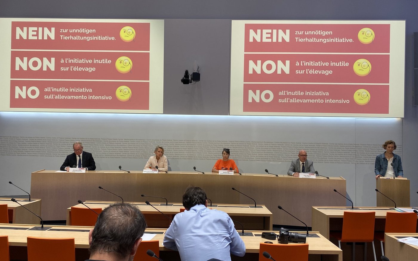 «Wir sind der EU um Meilen voraus», sagte seinerseits Markus Ritter, Präsident des Schweizer Bauernverbands (SBV). Bei uns sei die Käfighaltung von Legehennen seit 30 Jahren verboten, in der EU mit einem Anteil von 50% immer noch sehr verbreitet. Auch den Schweizer Schweinen gehe es deutlich besser als ihren Artgenossen im Ausland. Kastration sei immer nur mit Narkose erlaubt, Schwänze dürfte in keinem Fall kupiert werden. Zudem lebten 79% der deutschen Schweine auf Vollspaltenböden, dies sei bei uns nicht mehr zugelassen.