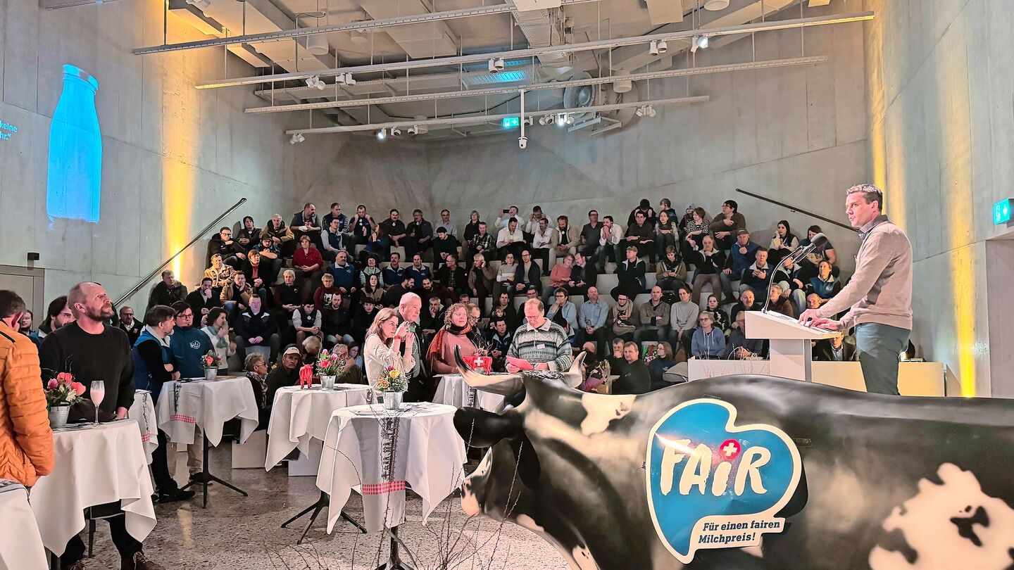 «Stellt euch mal vor, es gäbe keine Schweizer Milch», mit diesen Worten eröffnet Boris Beuret, Präsident SMP, die Veranstaltung. Ihm gegenüber lauschten Milchproduzenten von der Romandie bis in die Ostschweiz, die der Verbandseinladung folgten. Unter ihnen im Publikum verteilt, sassen auch ein paar Städter, sowie Journalisten der «weissen» Medien, wie zum Beispiel des Medienkonzerns Tamedia. An sie richtete sich der Apell der Milchproduzenten. «Kauft nachhaltig hergestellte Milchprodukte, die uns einen fairen Milchpreis ermöglichen, damit wir in Zukunft auch weiter Milch produzieren können», war in etwa die Botschaft.