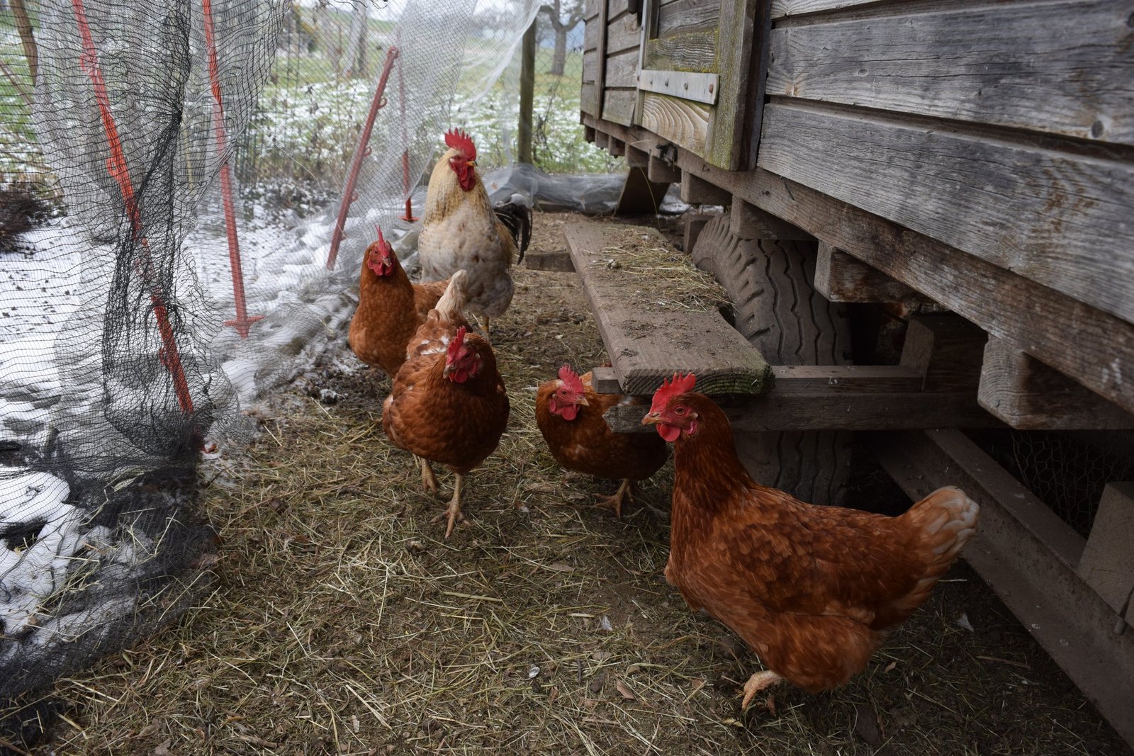 Tierbestand: 16 Milchkühe, 20 Mastschweine, 6 Hühner mit Hahn