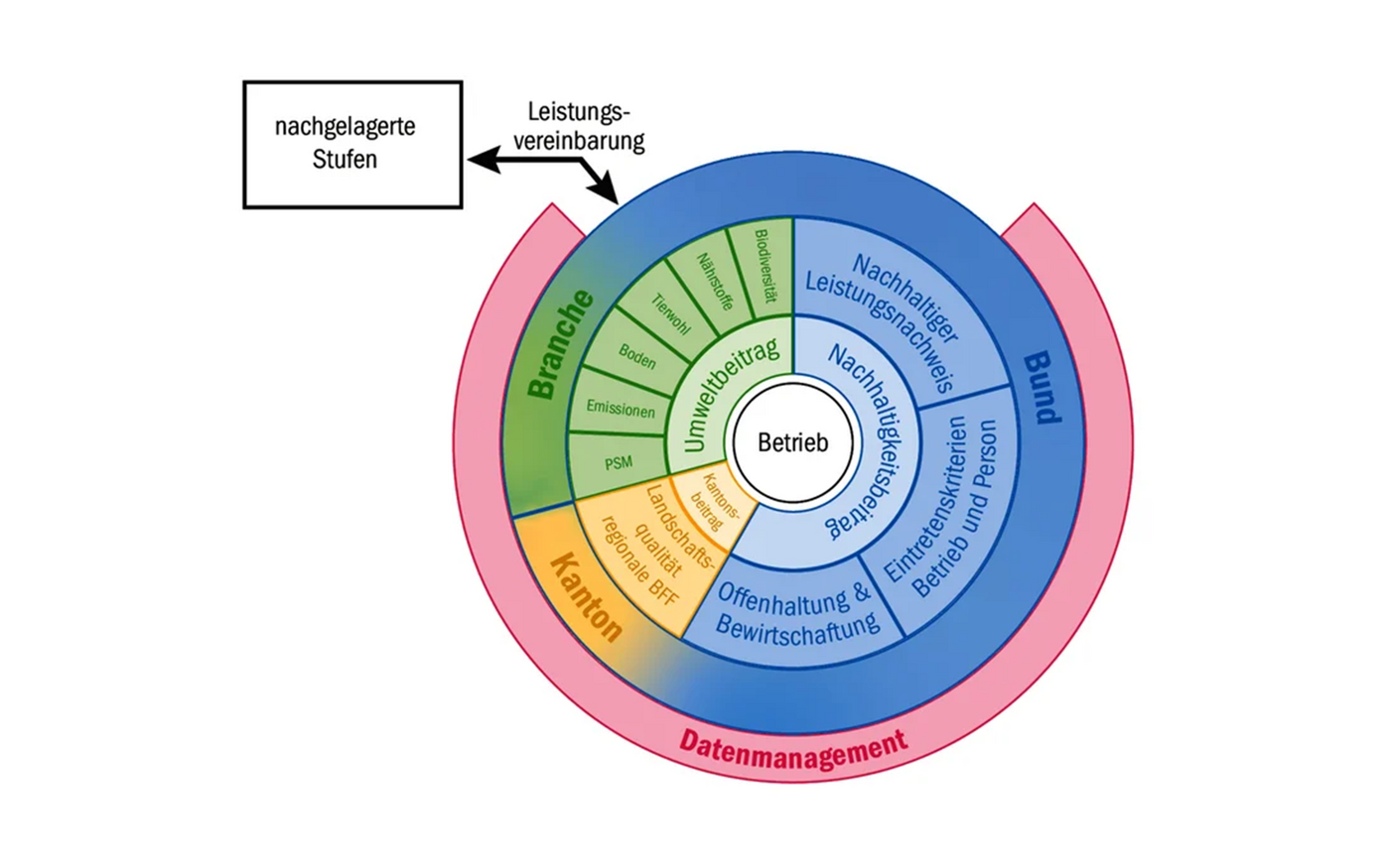 Das Datenmanagement bildet als roter Kreis eine verbindende Klammer in der Grafik des SBV. «Das muss alles viel einfacher werden als heute», betont Michelle Schenk-Wyss. Es gehe darum, bereits erfasste Daten möglichst gut zu nutzen – unter der Voraussetzung, dass die Betriebsleitenden die Hoheit über ihre Daten behalten und es keine Automatismen gibt.