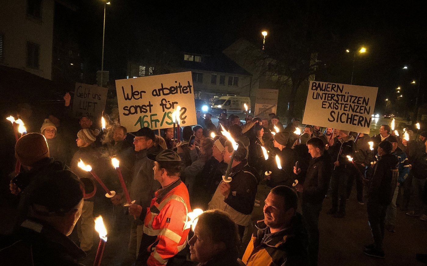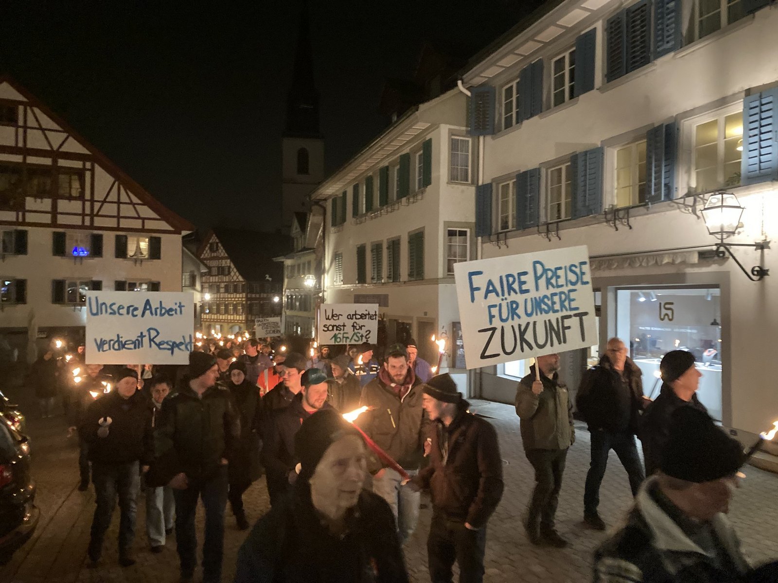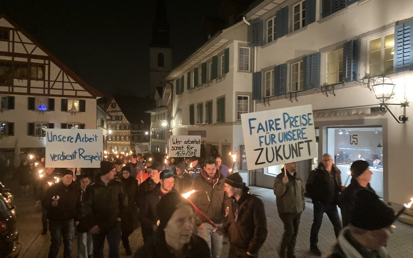 An drei Orten, in Bülach, Affoltern am Albis und Hinwil, hat der ZBV am 1. März Spaziergänge mit Fackeln und Mahnfeuern organisiert. Die Idee dahinter sei gewesen, die Landwirte zusammenzubringen, Druck auf die Abnehmer aufzubauen, aber auch etwas kontrolliert Druck abzulassen.