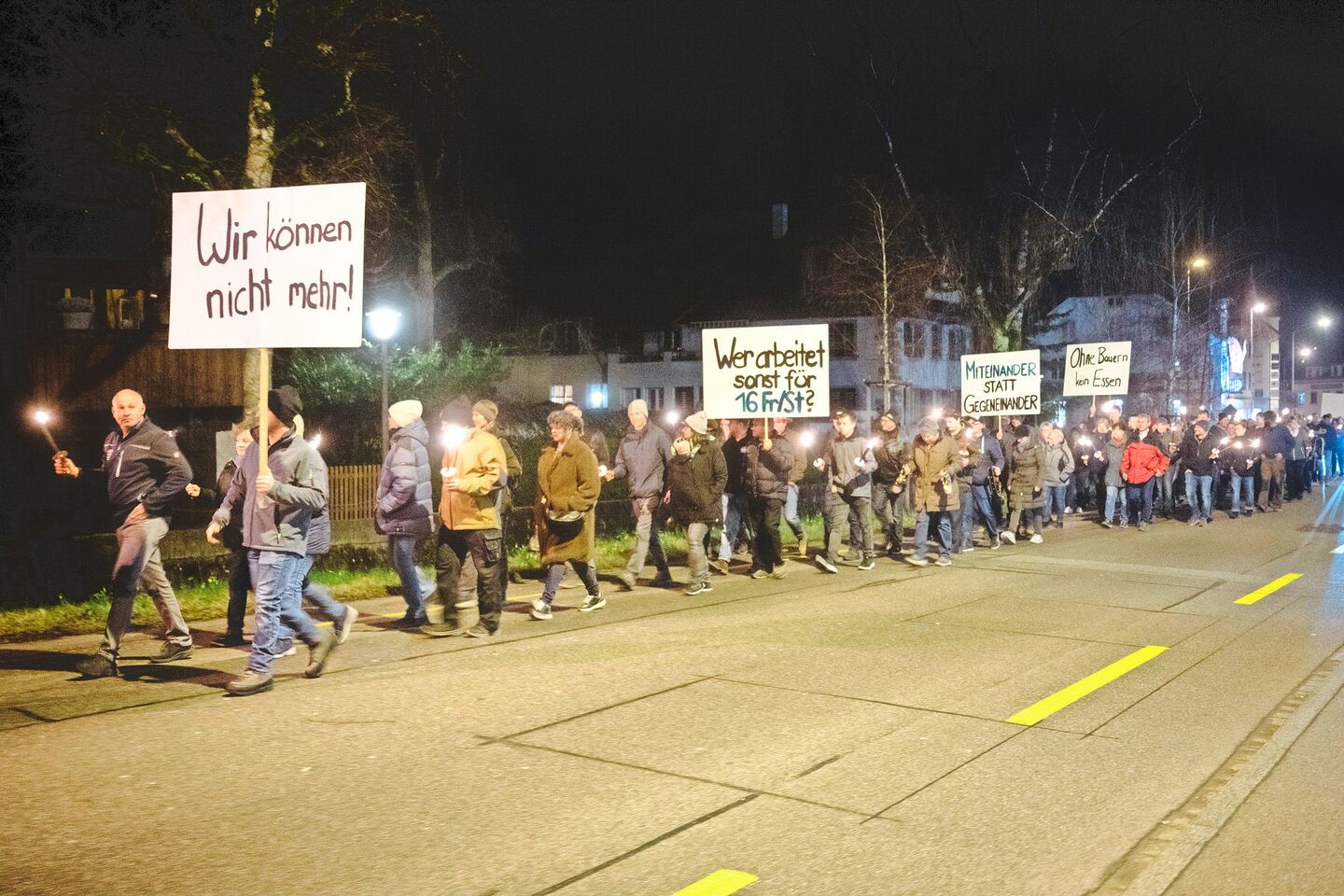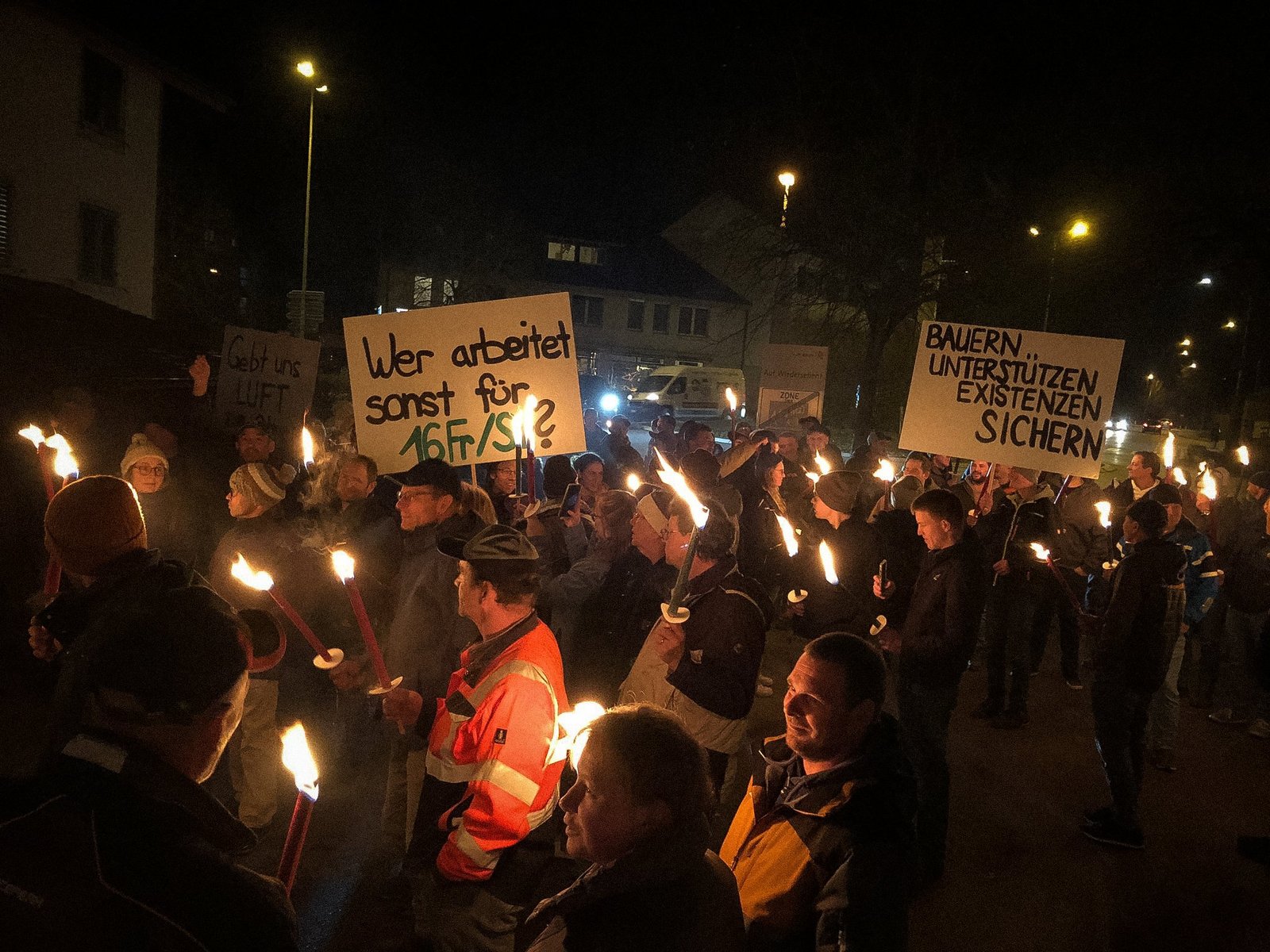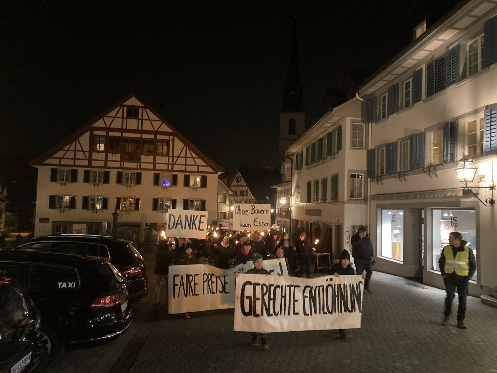 An drei Orten, in Bülach, Affoltern am Albis und Hinwil, hat der ZBV am 1. März Spaziergänge mit Fackeln und Mahnfeuern organisiert. Die Idee dahinter sei gewesen, die Landwirte zusammenzubringen, Druck auf die Abnehmer aufzubauen, aber auch etwas kontrolliert Druck abzulassen.