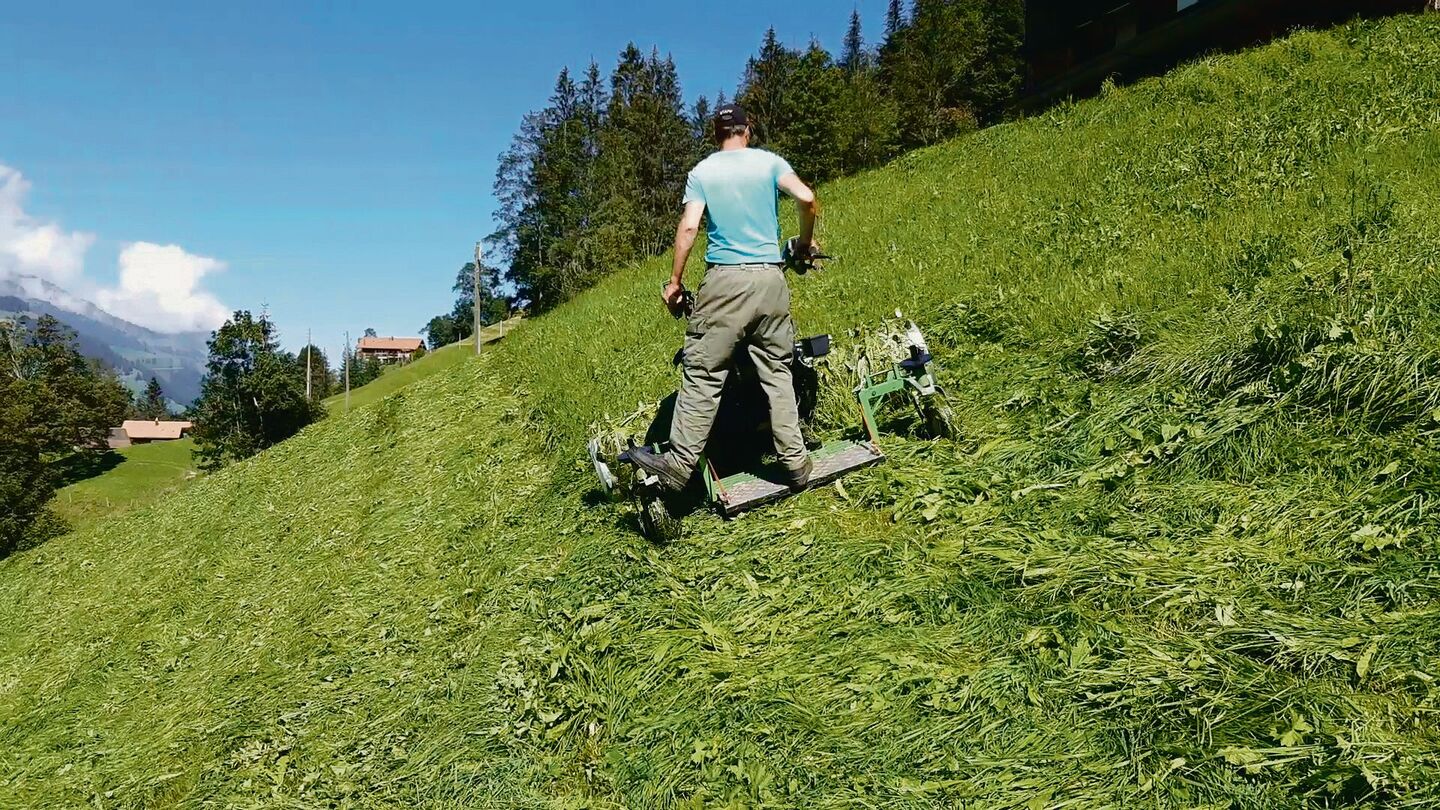 Wir haben ein wenig ‹gäbiges›, viel steiles und viel sehr steiles Land», sagt Markus Klötzli. Der Landwirt bewirtschaftet mit seiner Frau Christa und seinen Eltern ein Bergheimet, das diesen Namen verdient. Auf dem reinen Grünlandbetrieb ist deshalb viel Laufarbeit nötig, wenn die jährlich drei Schnitte gemäht, gekreiselt und geschwadert werden. Das geht an die Substanz und in der Saison muss dem Kräftehaushalt Beachtung geschenkt werden. Um die Anzahl Kilometer zu reduzieren, hat Klötzli schon länger einen Stehanhänger gesucht, wurde aber im Handel nicht fündig.