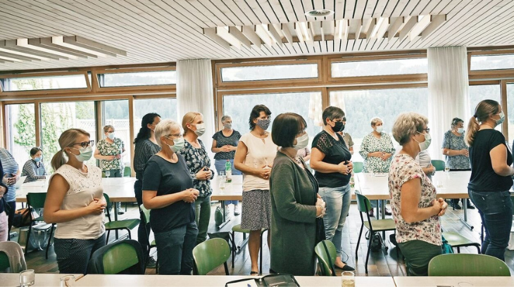 Er ist sich bewusst, dass es schwierig sei, solche Themen anzusprechen. Er gibt den Frauen folgenden Rat mit auf den Weg: In Worte fassen und mitteilen, was einem aufgefallen sei. Etwa, indem man den Satz beginnt mit: «Ich habe die Beobachtung gemacht, dass …». Timur Steffen betont: «Alles, was ihr probiert, ist besser, als nichts zu tun.» Es sei enorm wichtig, dass Themen rund um den ungesunden Stress enttabuisiert würden. Zwei anonymisierte Beispiele einer Bäuerin und einer Landwirtin zeigen deutlich auf, wie unterschiedlich Stress wahrgenommen wird. Und so muss auch jede selbst herausfinden, was ihr hinsichtlich Stressbewältigung gut tut, um in der Balance zu bleiben. Dass das Thema Stress uns alle angeht und wohl jede in irgendeiner Form weniger oder eben auch mehr von Stress betroffen ist, zeigt die kurze Gesprächssituation in kleinen Gruppen, für die Timur Steffen Fragen als Leitlinien vorgibt. Die Frauen sind kaum mehr zurück in den Saal zu bewegen, da sie so ins Gespräch vertieft sind. Zum Thema Stress und Depression gebe es sehr viel Literatur, so der Psychologe. Und: «Seid gwundrig, probiert was aus.» Man merke schnell, was gut tue und den Stress weniger wirken lasse. Und wenn der Stress überhand genommen hat, gilt es, sich dies einzugestehen und entsprechende Hilfe zu holen. Ein Test auf der Website des Berner Bündnis gegen Depression hilft dabei herauszufinden, ob man nur schlecht drauf ist, oder doch mehr dahinter steckt.
