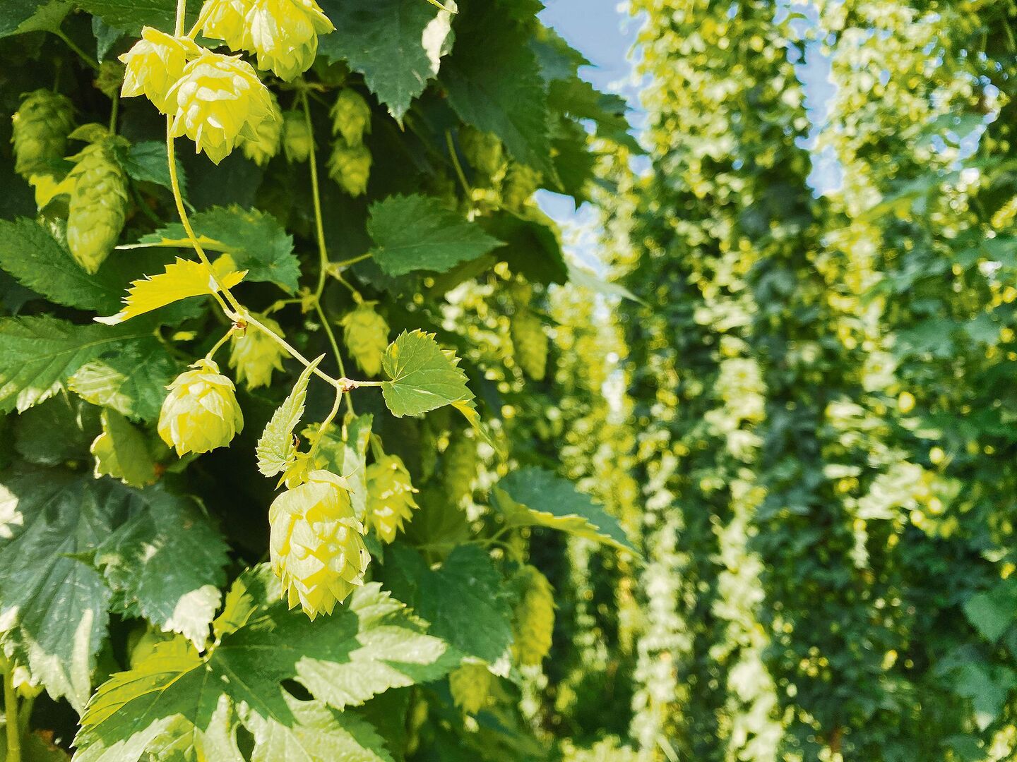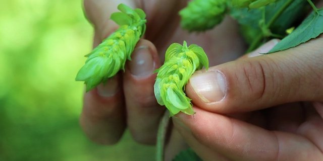 Die Hopfenstaude, welche für den industriellen Anbau genutzt wird, besteht aus weiblichen Pflanzen und ist mehrjährig. Im Frühling wird der Stock geschnitten, um ein gleichmässiges Austreiben der Triebe zu begünstigen und Krankheiten zu eliminieren. Für das Hopfenerlesen erfolgt der erste Arbeitsschritt maschinell, indem Pflanzentriebe vom Wurzelstock entfernt werden, in einem Zweiten werden von Hand überzählige Hopfentriebe weggeschnitten und die verbleibenden an den Steigdraht angedreht. In der Periode von März bis Ende Juni wächst die Staude dann auf eine fürstliche Höhe von bis zu sieben Metern. Anschliessend blühen die Pflanzen und die Ausbildung der typischen Dolden beginnt. Im September werden die Hopfen geerntet. Die Ernte ist eine grosse Arbeitsspitze und dauert etwa 10 bis 14 Tage.