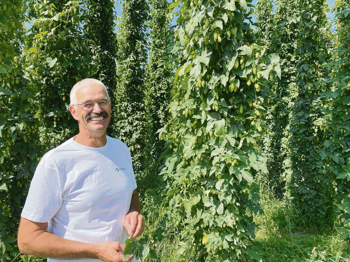 Der Agronom und Lehrmeister Stefan Ulrich ist nun seit 30 Jahren Vereinspräsident der Schweizer Hopfenproduzenten. Sein Vater Reinhard Ulrich hatte auf dem Betrieb in den Nachkriegsjahren mit Tabak begonnen, stellte aber nach drei Jahren auf Hopfenanbau um. Die Preise waren gut, so investierte er damals in eine grosse Trocknungsanlage und eine Hopfenpflückmaschine. Heute bewirtschaften Stefan (61) und Sylvia (55) Ulrich 290 Aren Hopfen, daneben betreiben sie Ackerbau mit Zuckerrüben und Mais. Zum Betrieb gehören zudem diverse Rebparzellen von zwei Hektaren Fläche und rund 27 Jerseykühe für die Produktion von Milch, Glace, Brie und Joghurt.