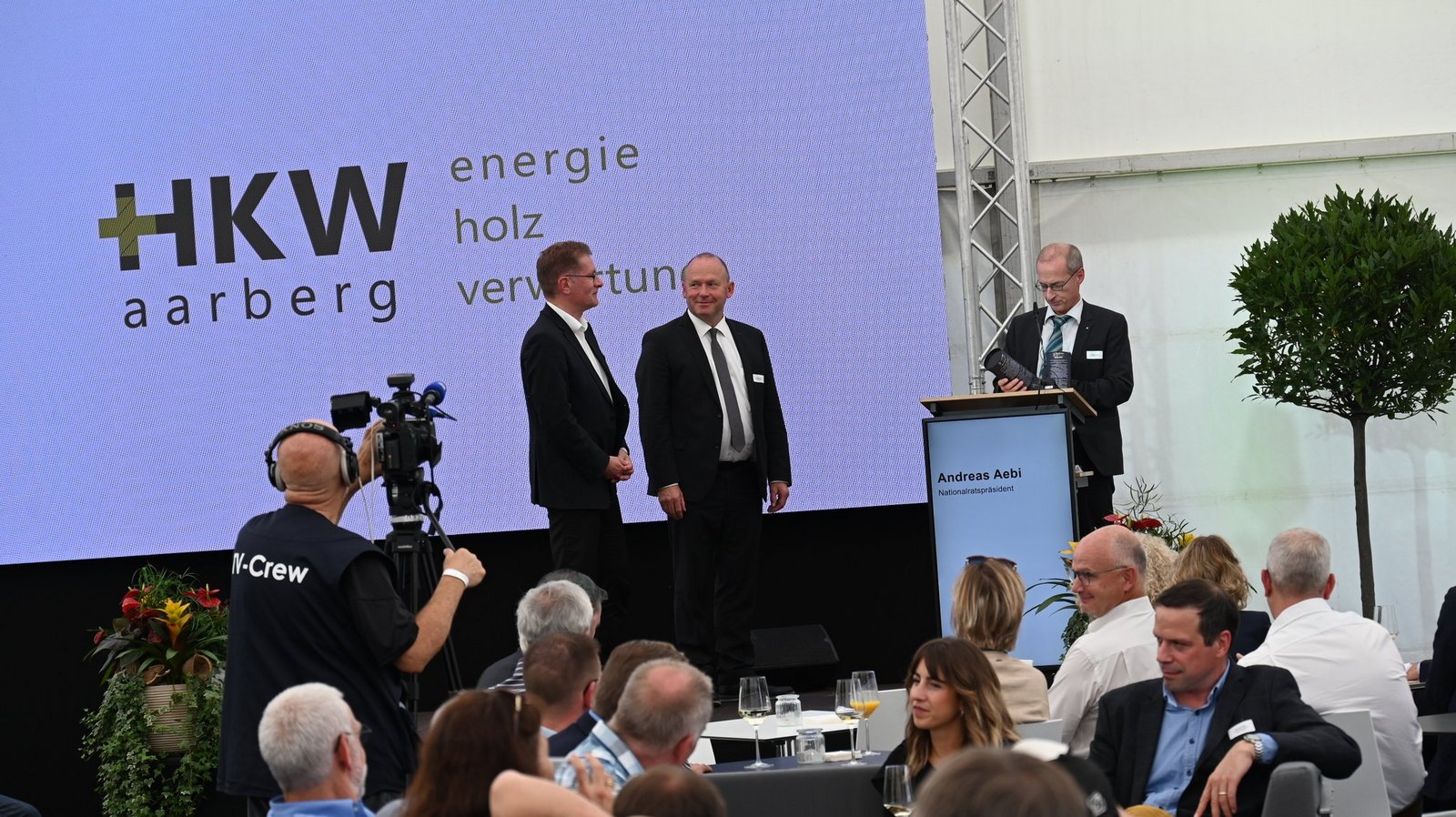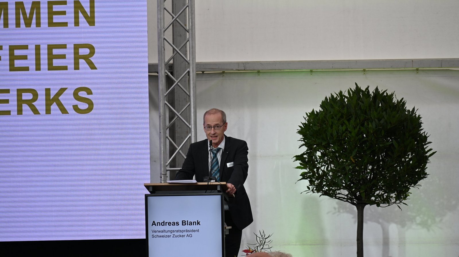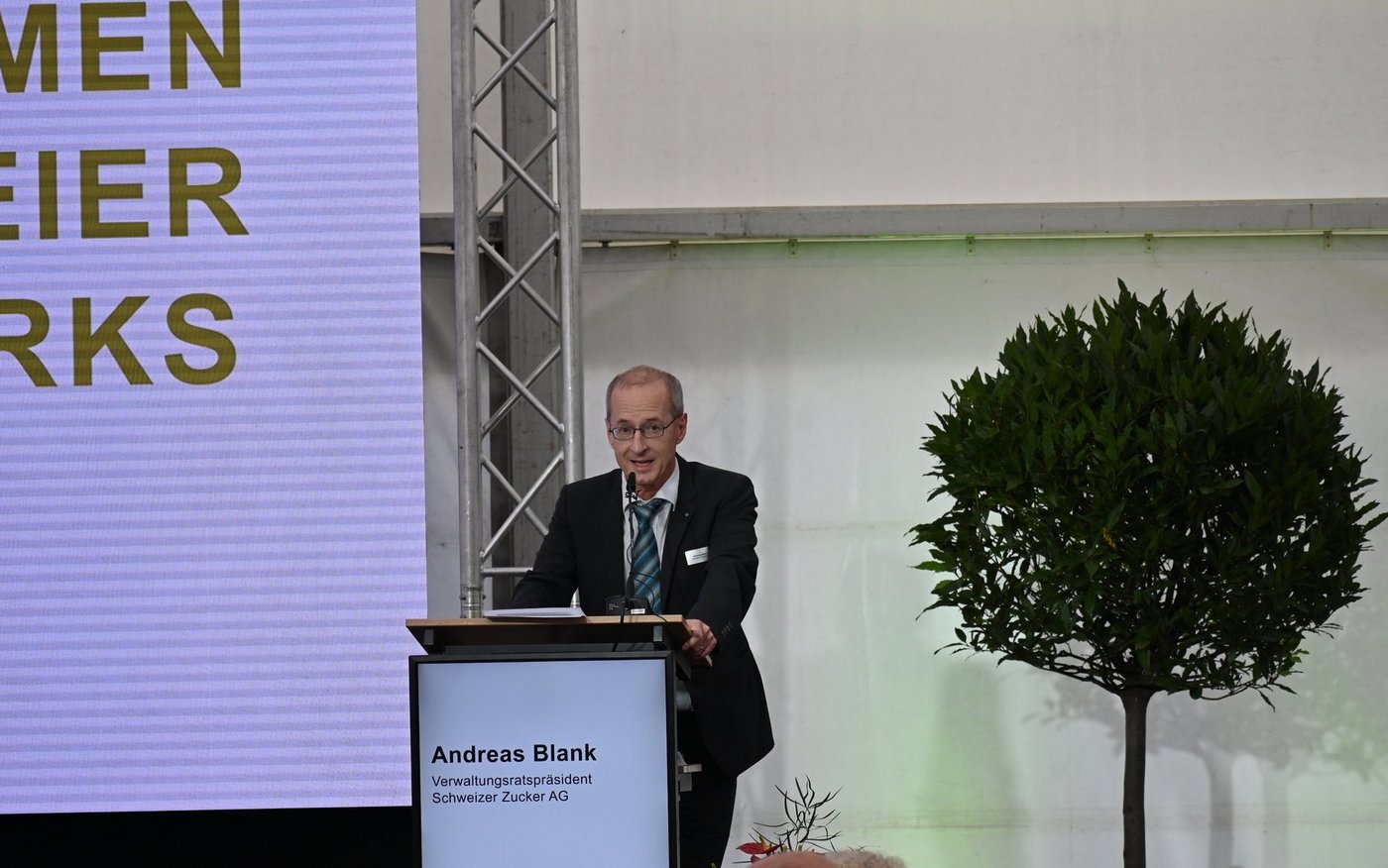 Eines hatten alle Reden gemeinsam: Die Schlagworte Freude, Stolz und Nachhaltigkeit. Andreas Blank machte zu Beginn deutlich: «Es ist mir eine Freude, Sie hier zu dieser Eröffnungsfeier begrüssen zu dürfen.» Er erklärte, dass es für die HKW AG, bei welcher die drei Firmen, Schweizer Zucker AG, AVAG und Terranova zu gleichen Teilen beteiligt sind, ein langer Prozess bis hin zur Realisation des Projekts gewesen sei. Er hob die Vorzüge des Kraftwerks hervor und bezeichnete es hinsichtlich Ökologie und Technik gar als Leuchtturmprojekt in der Schweiz. Die Zuckerfabrik Aarberg sei nun die nachhaltigste Zuckerfabrik in Europa. Christoph Neuhaus betonte, dass das HKW Aarberg die Ziele des Regierungsrates unterstütze und in vielen Bereichen ein Glücksfall für unser Land sei. Er wünschte den Verantwortlichen:«Guet Holz und viu Strom.» Und Andreas Aebi machte darauf aufmerksam, dass es Arbeitsplätze bedeute, wenn die Wertschöpfung im eigenen Land behalten werden könne. Er machte deutlich, dass es sich lohne zusammenzustehen, wie das die drei Firmen getan haben, um ein gemeinsames Projekt zu realisieren. Das Beispiel der HKW AG stimme ihn für die Zukunft zuversichtlich.