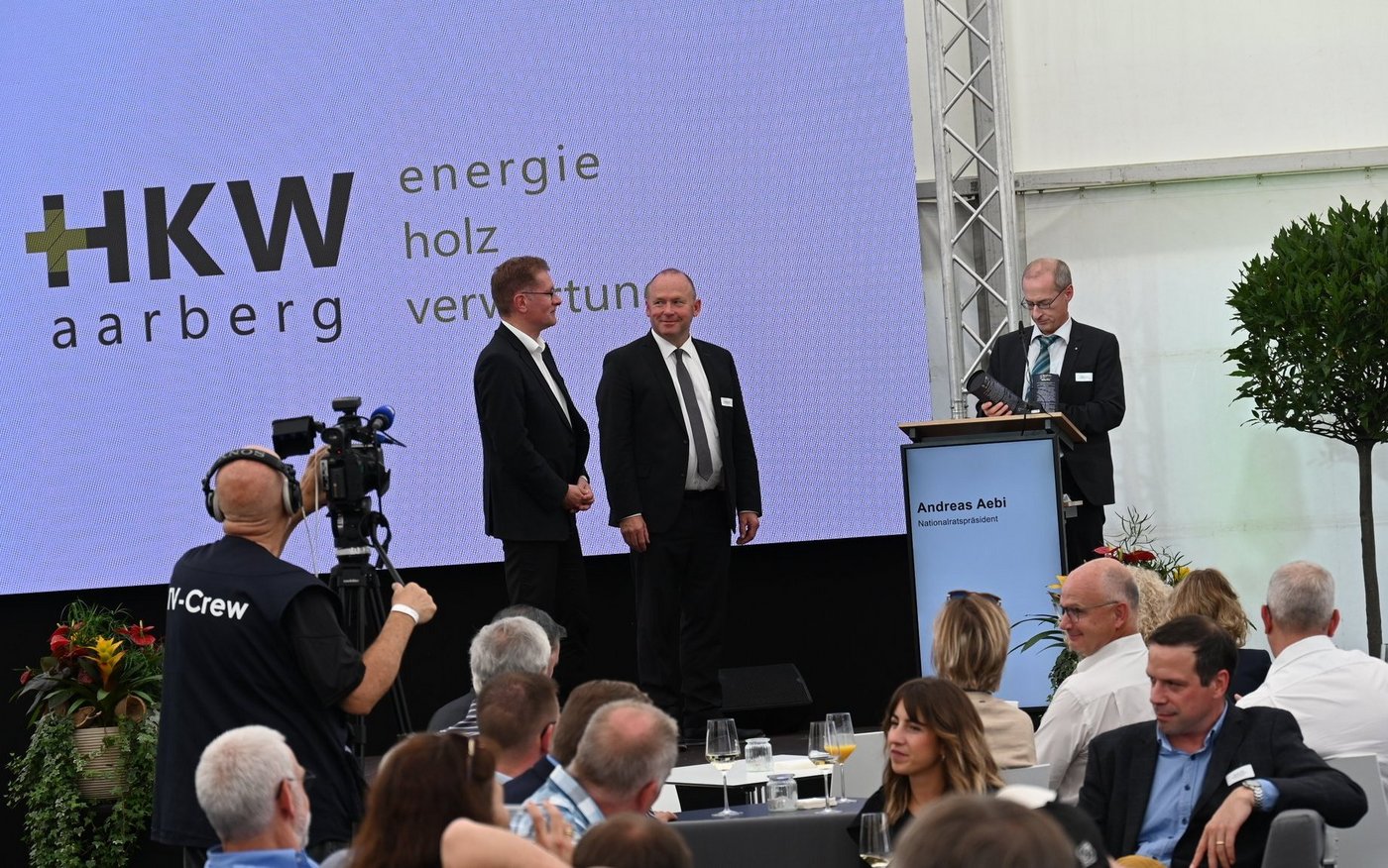 Das grösste Holzheizkraftwerk der Schweiz ist jetzt offiziell eröffnet. Am 30. November letzten Jahres wurde das erste Feuer im Holzkraftwerk (HKW) Aarberg entfacht und vergangenen Freitag mit einem Festakt offiziell eingeweiht. Rund 130 Gäste wohnten der Feier bei, darunter zahlreiche Persönlichkeiten aus Politik und Wirtschaft. Nebst Andreas Blank, Verwaltungsratspräsident Schweizer Zucker AG, hielten auch Nationalratspräsident Andreas Aebi, Regierungsrat Christoph Neuhaus sowie die beiden Verwaltungsratspräsidenten der Projektpartner, Beat Brechbühl, AG für Abfallverwertung (AVAG) und Daniel Allemann, Terra Nova GmbH, eine Ansprache.