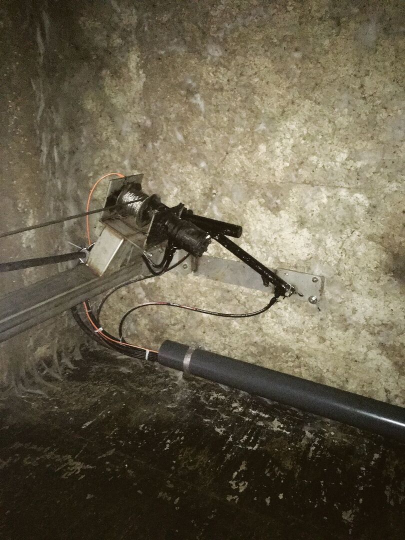 Die Rührwerkanlage, die Patrick Rudin konstruiert hat, ist eine hydraulische Lösung. «So muss ich nicht Angst haben, dass Elektronik zusammen mit Gasentwicklung zu einer Explosion führt», erklärt Rudin. Das Rührwerk ist direkt vor der Mitteltrennwand des Güllelochs installiert.