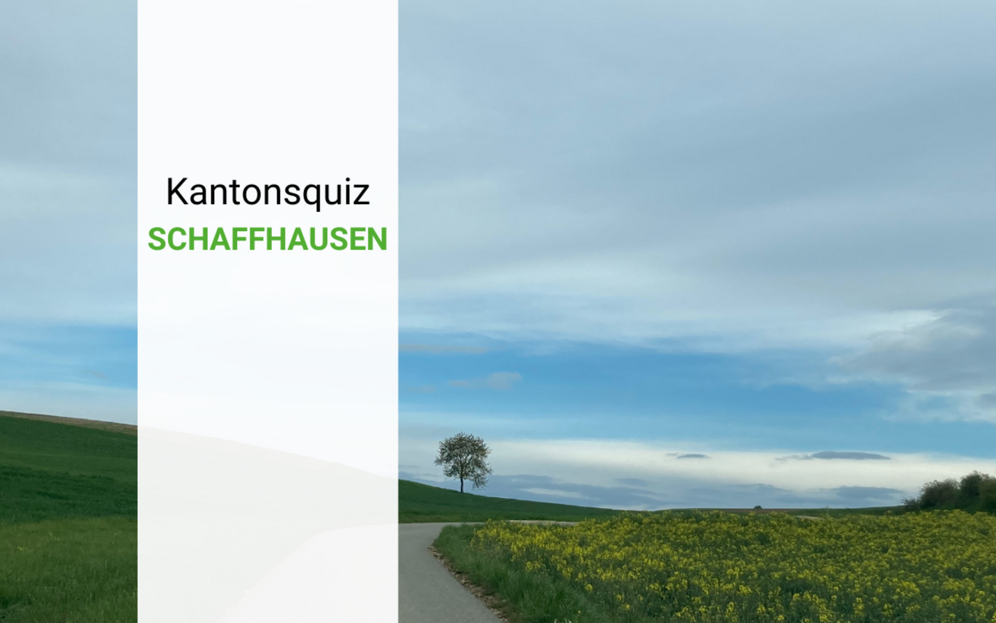 Wir sind beim siebten und letzten Kantonsquiz unserer Region Ostschweiz und Zürich angelangt. Es ist Schaffhausen gewidmet, dem nördlichsten Kanton der Schweiz. Die ländliche Gegend verfügt über einen grossen Anteil an Ackerland und Reblagen. Auch Überraschungen gibt es: Obwohl Schaffhausen kein Bergkanton ist, findet man hier dennoch eine Alp (welche, sei hier nicht verraten).