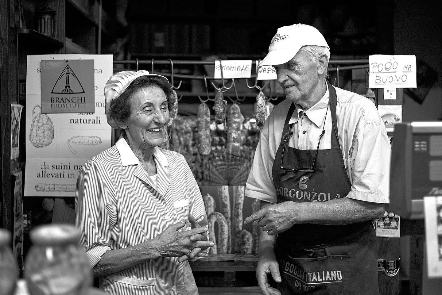 Mit dem Rücken zur Sonne und der steinverkrusteten Strasse schaue ich in die ewige Dämmerung. Im Inneren des Ladens, der keinen Namen hat. Scheinbar braucht er nicht einmal einen. Auf einer Visitenkarte, die zwischen alten Fingern eingeklemmt ist, steht lediglich: «Le buone abitudini alimentari» (gute Ernährungsgewohnheiten) und dann «Luciano e Marialuisa». Mehr ist nicht nötig.