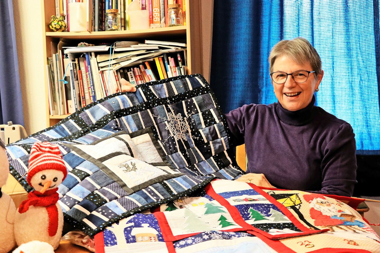 Sie sei eigentlich keine «Deko-Tante», erklärt die gelernte Trachtenschneiderin, aber die Produktion von Adventsfenstern sei ihr eine Herzensangelegenheit. Für diese Adventsfenster waren auch die Wandbehänge im Einsatz, allesamt prächtige Einzelstücke. Auf einen hat Erika Hubeli 500 Roccailles-Perlen als Schneeflocken genäht, in andere sind Erinnerungen verarbeitet: ein Knopf vom Sommermantel der Mutter, Streifen vom Barchenthemd des Vaters. Andere Sujets haben im Arbeitszimmer keinen Platz oder wurden der Natur zurückgeführt: Engel aus Holz, Kugeln aus Weidenästen, eine Waldweihnacht mit echten Tannen. Für die Puppen, die darunter picknickten, hatte Erika Hubeli Samt-Capes mit Pelzbesatz genäht.[IMG 2]