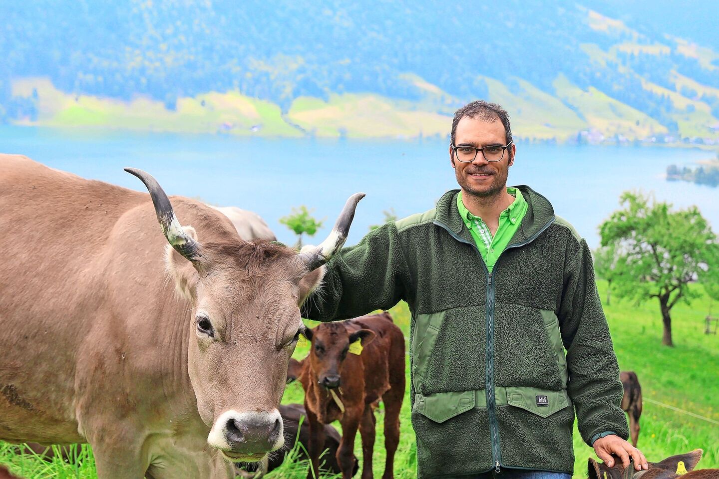 Adrian Iten-Marty ist auf einem Landwirtschaftsbetrieb in Safenwil im Kanton Aargau aufgewachsen. Nach seinem Agronomie-Studium an der ETH Zürich war er von 2012 bis 2015 Leiter Markenprogramm bei Mutterkuh Schweiz. Darauf folgte ein vierjähriges Engagement bei Coop, wo er Projektleiter Tierwohl war. Seit drei Jahren arbeitet der bald 40-Jährige in einem Teilpensum bei der Wiesenschwein AG, wo er als Geschäftsführer für die Rekrutierung von neuen Betrieben und für die Vermarktung zuständig ist. Zusammen mit seiner Frau Laura Marty-Iten führt er seit 2019 den Biohof Bruhst in Oberägeri. Im März dieses Jahres wurde er als Nachfolger von Peter Waltenspül zum neuen Präsidenten von Bio Zug gewählt.