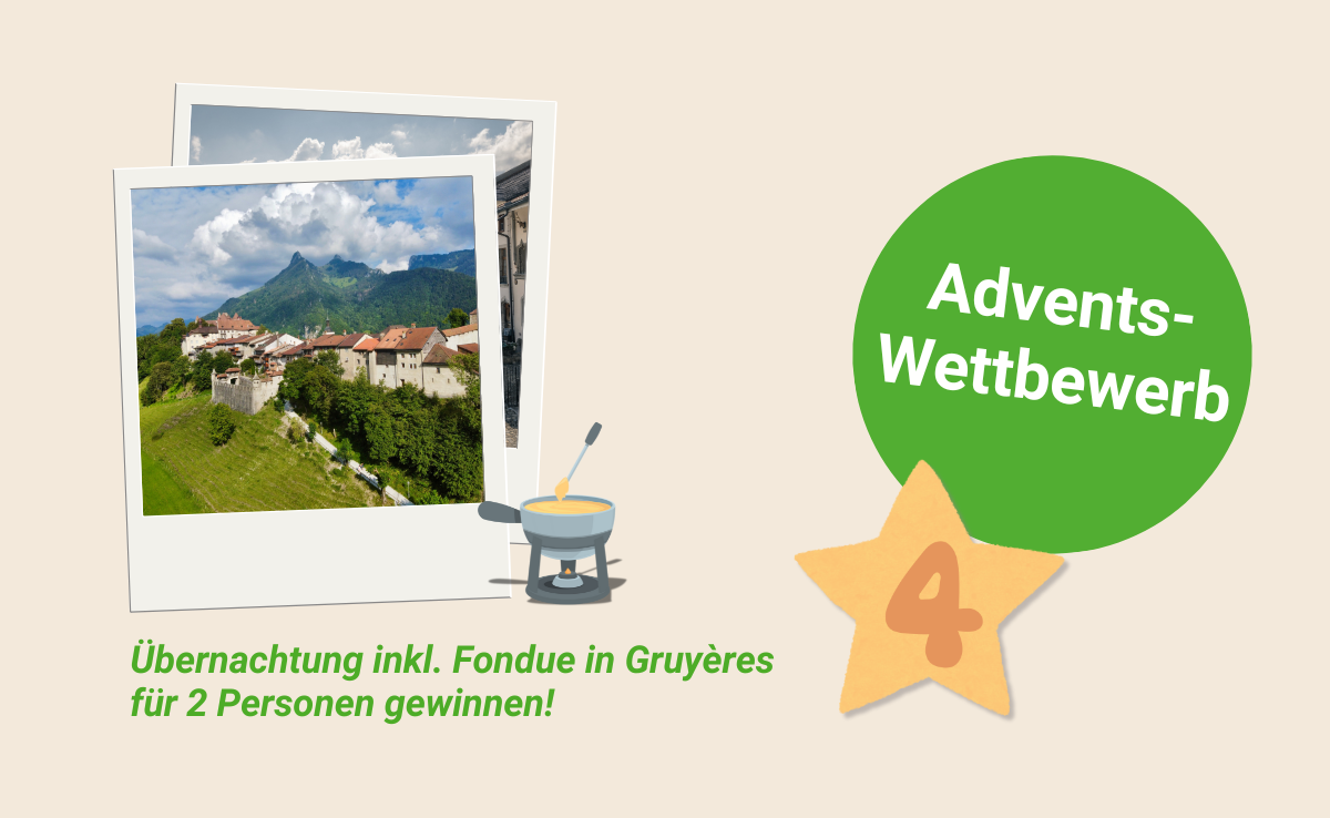 - Gewinnen – Durch das Absenden des Formulars nehmen Sie automatisch an der Verlosung der Übernachtung in Gruyères teil. Die Gewinnerin oder der Gewinner wird anschliessend persönlich kontaktiert.