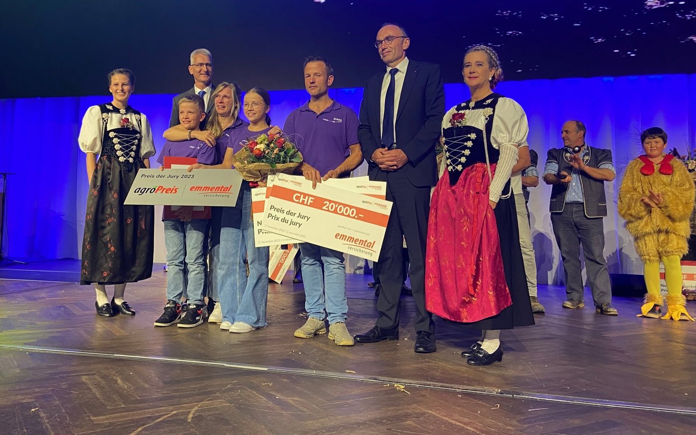 Das Siegerprojekt heisst «Fenaison Bleue». Aus den Händen von Bauernverbandspräsident Markus Ritter durfte Familie Chèvre aus Mettembert JU den Agropreis entgegennehmen. Gleichzeitig gewannen sie auch noch den Leserpreis von «Schweizer Bauer» und «Terre & Nature», der mit 3000 Franken dotiert ist.