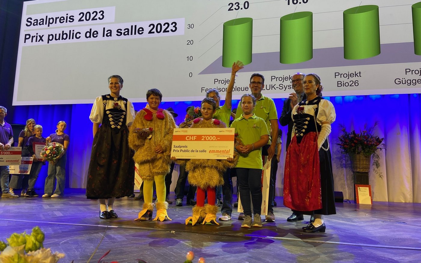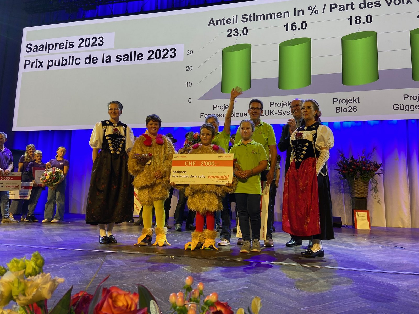 Auch das Publikum im Berner Kursaal hatte ein Wörtchen mitzureden. Sie durften nämlich den mit 2000 Franken dotieren Saalpreis per Handy-Abstimmung vergeben. Gewonnen hat diesen das Projekt «Güggelglück».