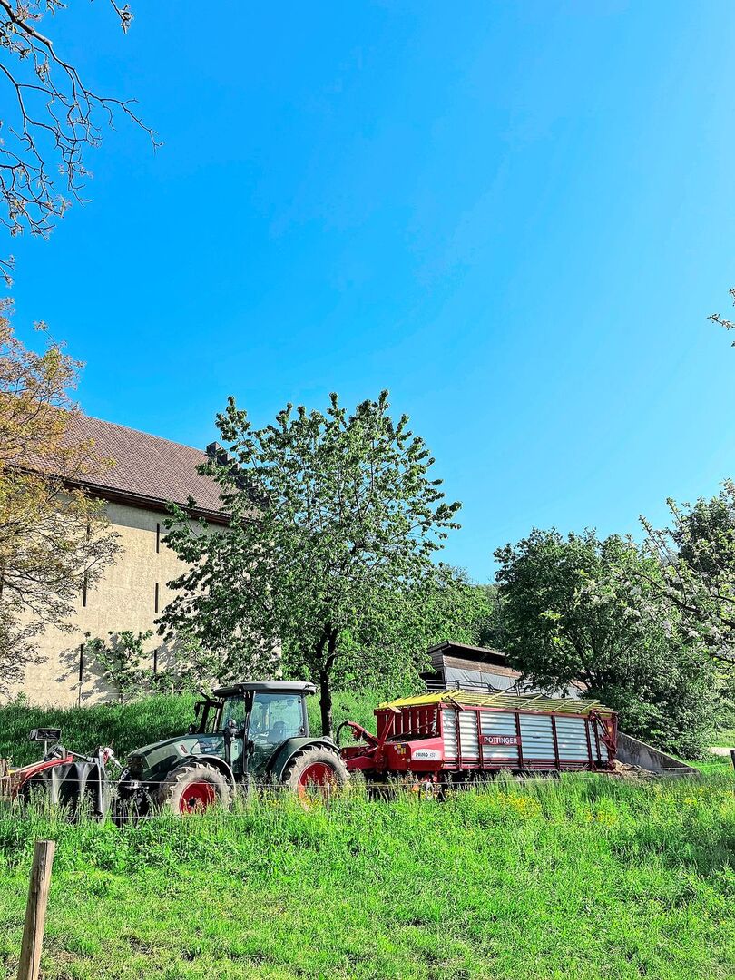 Zwischen Wohnhaus und Stall verläuft nämlich die Zufahrt zum Schloss Wildegg – einem beliebten Ausflugsziel im Kanton Aargau, besonders an einem schönen Frühlingstag wie heute.
