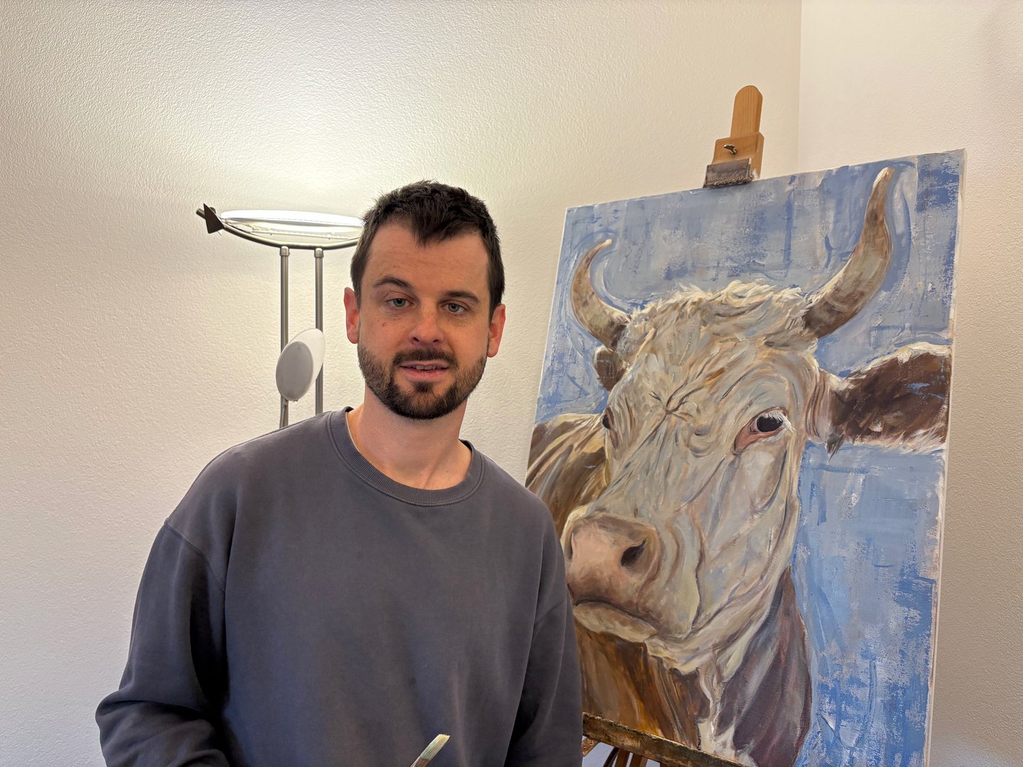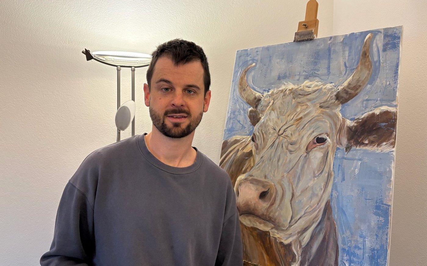 Auch bei den Preisen arbeitet er nicht nach fixem Raster. Ein gängiges Format – etwa 60 × 80 Zentimeter, die typische Porträtgrösse – liegt meist zwischen 800 und 1000 Franken, manchmal auch darüber. Eins ist aber klar: «Kühe verkaufen sich besonders gut.»