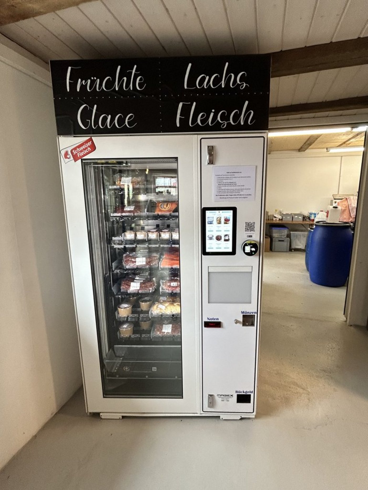 Im Hofladen befinden sich in einem gekühlten und tiefgekühlten Verkaufsautomaten Lamprechts Weine und hofeigene Fleischwaren – in guter Nachbarschaft mit Wildschweinbratwürsten und -schübligen sowie Lachs. «Mein Bruder Mathias ist Jäger, und von ihm übernehmen wir das Wild – und das mit dem Lachs musst du erklären», sagt Lamprecht mit Blick auf seine Frau Amina. «Konrad Schaad, ein Schulkollege von meinem Schwiegervater, ist nach Alaska ausgewandert und fischt dort Lachse, mittlerweile auch mit seinen Söhnen. Den Lachs importierte eine frühere Schulkollegin. Nach 14 Jahren übergab sie uns diese Geschäftstätigkeit», erzählt Amina Lamprecht. [IMG 3]