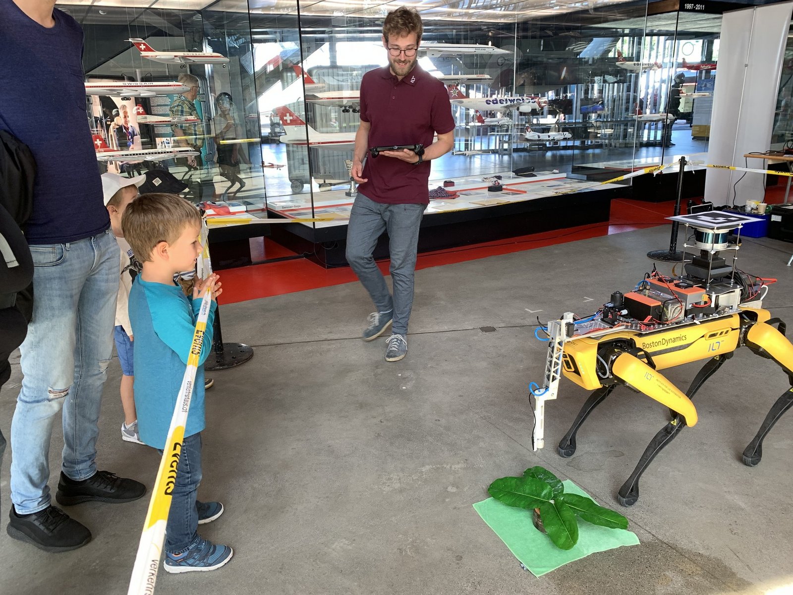 Die Fachhochschule Ost präsentierte den Roboterhund von Boston Dynamcis. Dank der Aufbautechnik mit Sensoren passt sich das Schreitgefährt der Umgebung an, kann auch Hindernissen ausweichen. Und mit eingebauten Spritzdüsen sind künftig Anwendungen wie Unkrautbekämpfung in der Landwirtschaft denkbar, beispielsweise in Rebbergen. Oder Blackenbekämpfung auf Alpweiden.