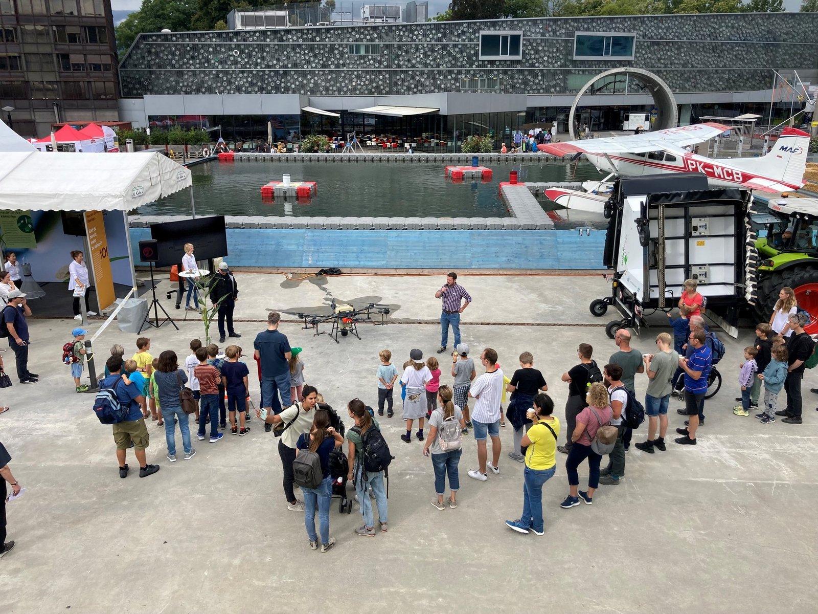 Die Agrarpiloten liessen kleine und grosse Drohnen fliegen, wie sie bereits in praktischem Einsatz sind. So etwa zur Platzierung von Trichogrammen, den Nützling gegen den Maiszünsler. Der «Traktor unter den Drohnen» ist mit 50 kg Gesamtgewicht deutlich grösser und kann mit einem 20 Liter Tank ausgestattet werden. Damit kann er zum Spritzen in Kartoffel-, Mais- oder Kürbiskulturen, oder auch für Untersaaten oder zum Streuen von Schneckenkörnern eingesetzt werden. Mit dem Fluggefährt können Behandlungen in Kulturen erfolgen, die bei nassem Wetter sonst nicht möglich wären.