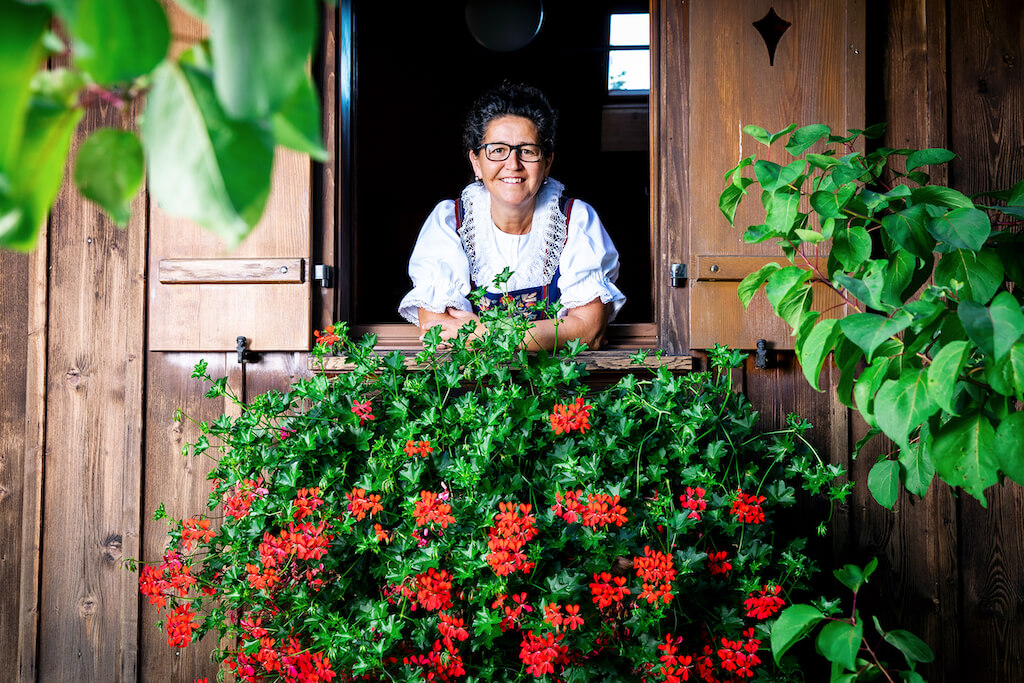 Die Landfrau schätzt es, die eigenen Produkte verarbeiten zu können und hat einen grossen Gemüse- und Blumengarten. (Bild Ueli Christoffel/SRF)