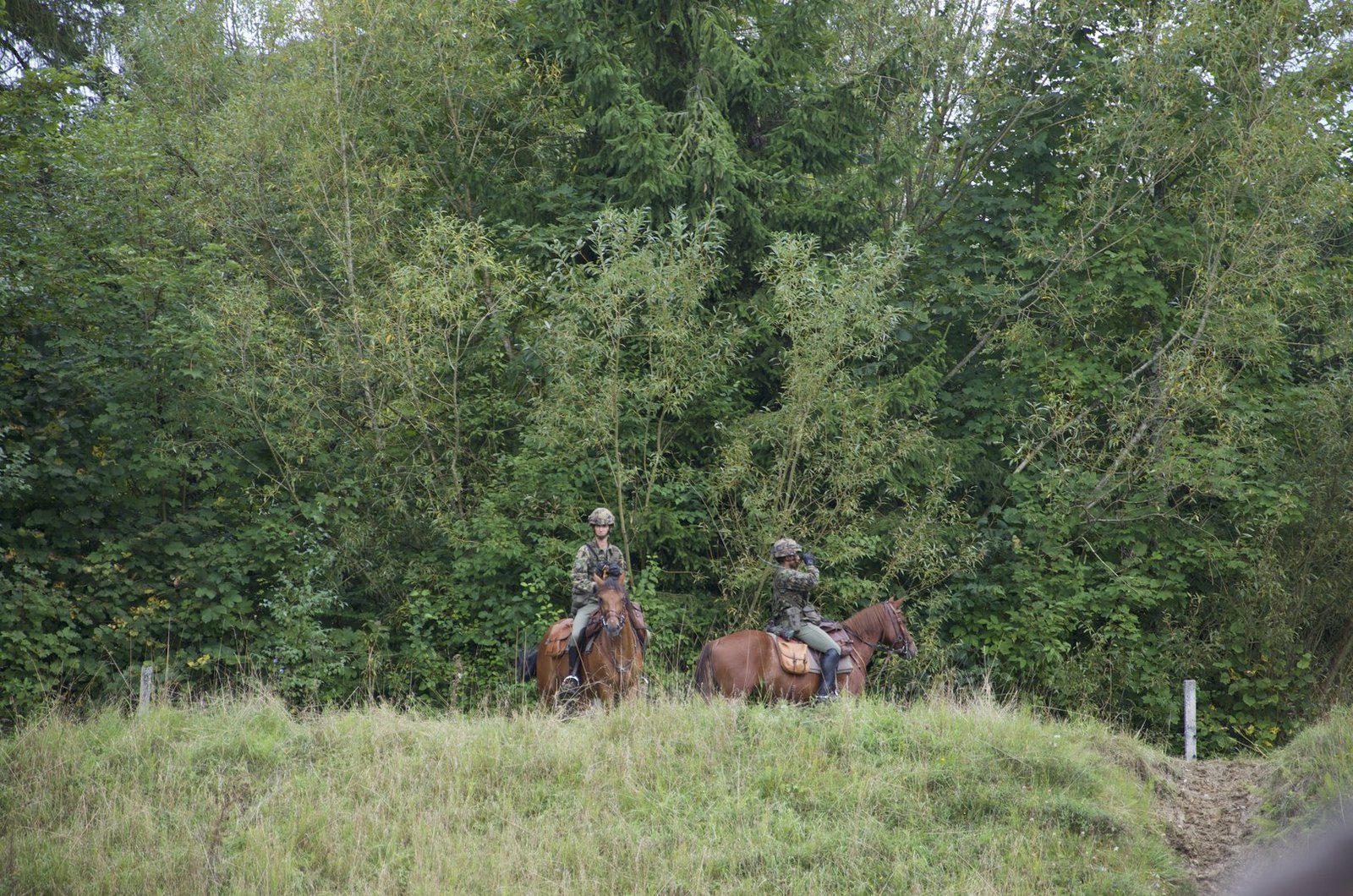 Das Binom des Patrouillenreiterzuges überwacht weiterhin vom Wall aus seinem Sektor mit Feldstecher und Wärmebildgerät.