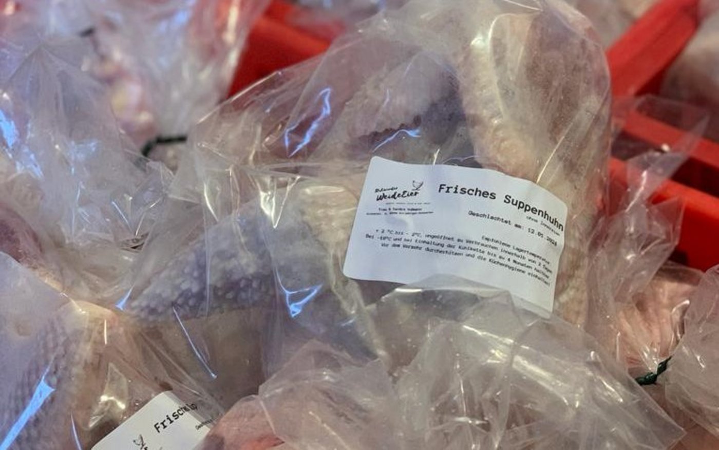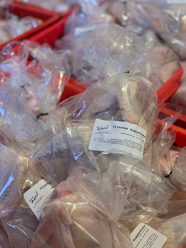 Unsere Kundschaft konnte sich bereits vorweg per Bestellschein die gewünschte Anzahl an Suppenhühnern reservieren. Die frischen Suppenhühner verkaufen wir am Tag der Schlachtung nachmittags und am Folgetag morgens direkt an unsere Kundschaft für umgerechnet rund 8 Franken das Stück. Da wir unsere Hennen ja verhältnismässig jung tauschen, sind die Schlachtkörper ausgesprochen fleischig.