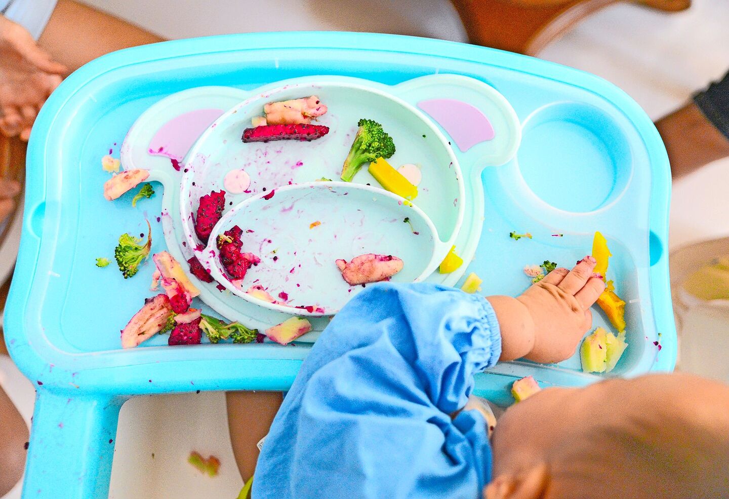 Im ersten Lebensjahr nimmt das Baby die meisten Nährstoffe weiterhin durch das Stillen nach Bedarf und/oder die Fläschchengabe nach Bedarf auf. Genau aus diesem Grund sollte es nicht das Ziel der Eltern sein, möglichst schnell die Milchmahlzeiten zu ersetzen, sondern dass die Babys Spass dran haben, das Essen zu erkunden. Natürlich ist es unabdingbar, dass die Eltern gesund und ausgewogen essen – und somit auch Babys solche Lebensmittel bekommen.