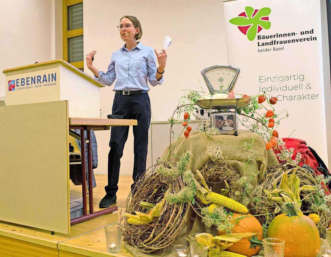 «Trägt nicht jeder von uns einen Rucksack mit sich herum? Jeden Tag, 24/7, der vollgepackt ist mit schönen Erinnerungen, tollen Erfahrungen, aber auch mit nicht so schönen Dingen, die einen fragen lassen: Warum regt mich das jetzt wieder auf? Warum ärgert mich das schon wieder?» Symbolisch, mit einem grossen Rucksack auf dem Rücken, leitete Beatrice Buess, Vizepräsidentin und Einsatzleiterin der Landfrauenhilfe, die diesjährige Herbsttagung des Bäuerinnen- und Landfrauenvereins beider Basel ein. «Willst du streiten oder glücklich sein?» So lautete das diesjährige Thema der Veranstaltung vergangene Woche in der Aula des Landwirtschaftlichen Zentrums Ebenrain in Sissach.