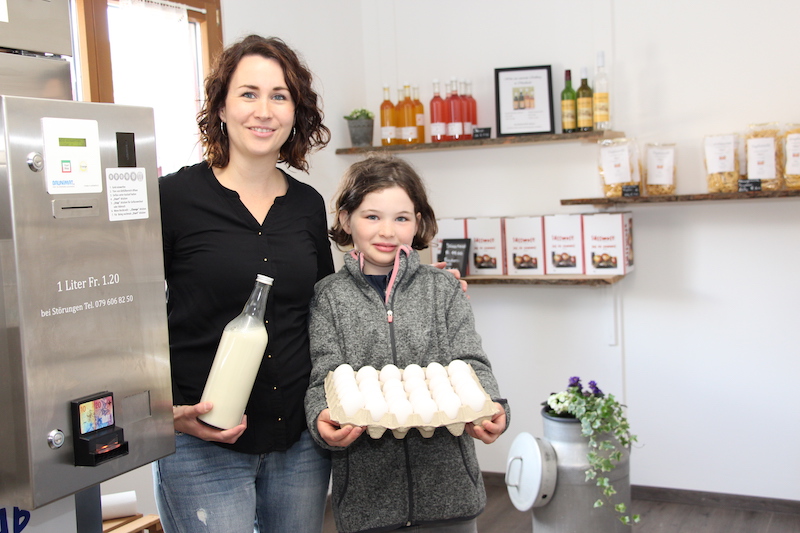 Die nimmermüde Bäuerin erfüllte sich kürzlich mit dem «Guggerhof-Lädeli» einen lange gehegten Wunsch. Im liebevoll eingerichteten Lädeli steht seit Mitte Mai ein «Brunimat»,der kühle Frischmilch in Flaschen oder Milchkesseli füllt. Daneben werden Eier, Süssmost, Wein, Traubensaft, Chnobli-Anke, selber gemachte Teigwaren, Konfi, Sirup, Bärlauch-Pesto, Meringues und Brätzeli verkauft. Ein weiteres Projekt ist im Anmarsch: Auf dem Guggerhof soll dereinst ein neuer Hühnerstall entstehen, als Ersatz für den bisherigen.