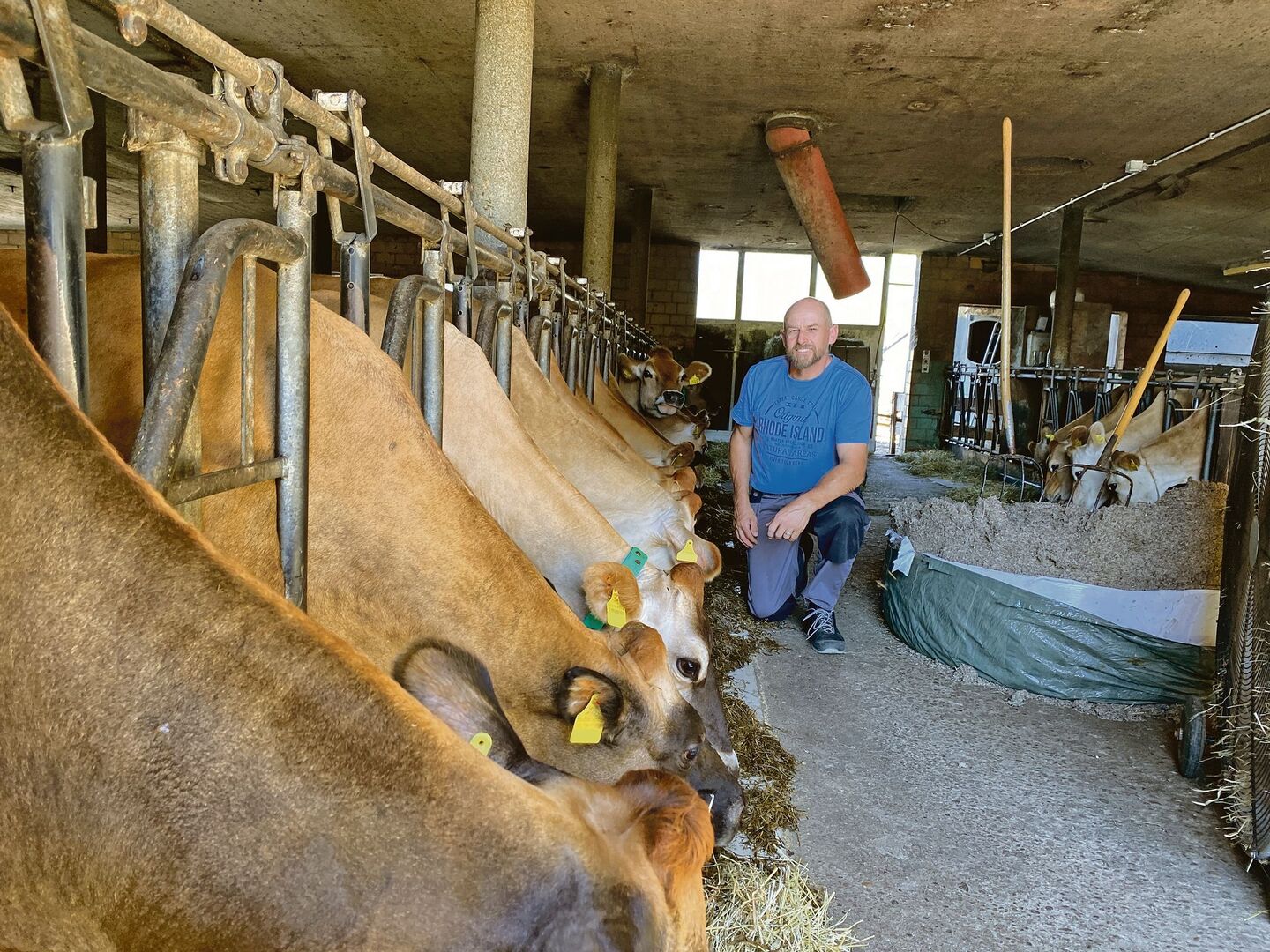 André Stalder hat nach der Landwirtschaftslehre verschiedene Weiterbildungen absolviert, arbeitete unter anderem dreizehn Jahre in Südafrika als Reiseleiter und später sieben Jahre beim Berner Bauernverband. Zu seinem Hof gehören derzeit 30 Jersey-Kühe und zehn Hektaren landwirtschaftliche Nutzfläche, die er «nun etwas extensiviert und ab 2022 auf Bio umstellt». Auf dem Betrieb werden zwei Lehrlinge ausgebildet, und im oberen Stockwerk des Stöcklis wohnen zwei Männer mit Beeinträchtigungen.