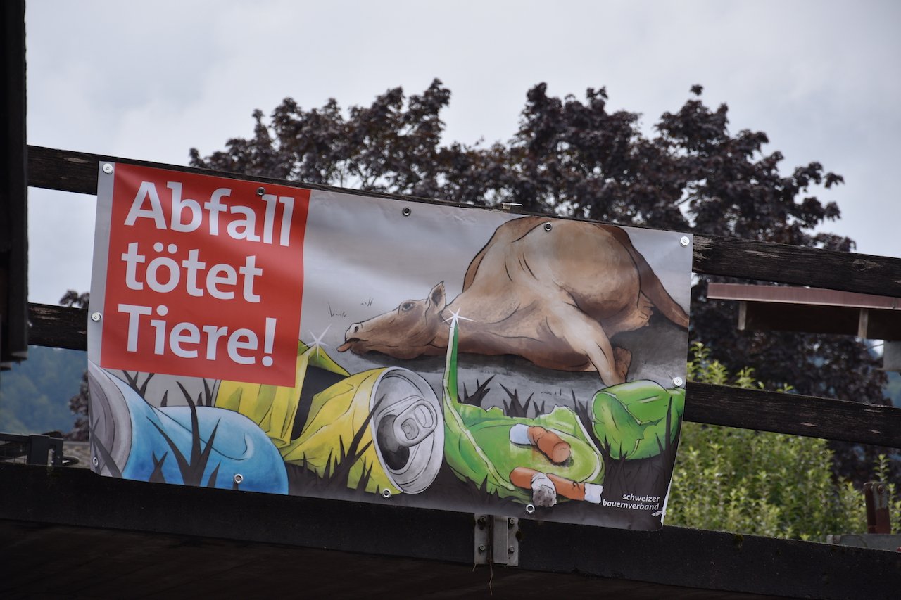 Idealerweise gelangt der Abfall gar nicht in die Umwelt – sprich, Verpackungen sollten nicht einfach aus dem Autofenster geworfen werden. «Vor genau 10 Jahren haben der SBV und die IGSU die erste Anti-Littering-Sensibilisierungskampagne gestartet», erzählt Martin Rufer. Die in diesem Jahr lancierte, neue Kampagne schlägt mit dem Slogan «Abfall tötet» und dem stilisierten Bild einer toten Kuh einen schärfern Ton an als früher. Damals trugen die Plakate den Hinweis «Abfall macht mit krank» mit einer lebenden Kuh auf der Weide. Die Corona-Pandemie habe das Littering-Problem noch verstärkt und die neue Kampagne sei aufgrund vieler Rückmeldungen entstanden, so Rufer.